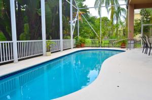 Meticulous, beautiful and spacious 4 BR pool home with stunning and lush landscaping. Pool has high-dome screening for added space and year round enjoyment.Home is great for entertaining. Open floor-plan with volume ceilings. Kitchen opens to family room plus there is a seperate living room for quiet entertaining. This is a fabulous and spacious-feeling split bedroom plan. HOA includes guard-gate, clubhouse with fitness, resort-style pool, tennis, tor-lot, meeting/car/party rooms. Close to South County Park, Shopping and Schools/
