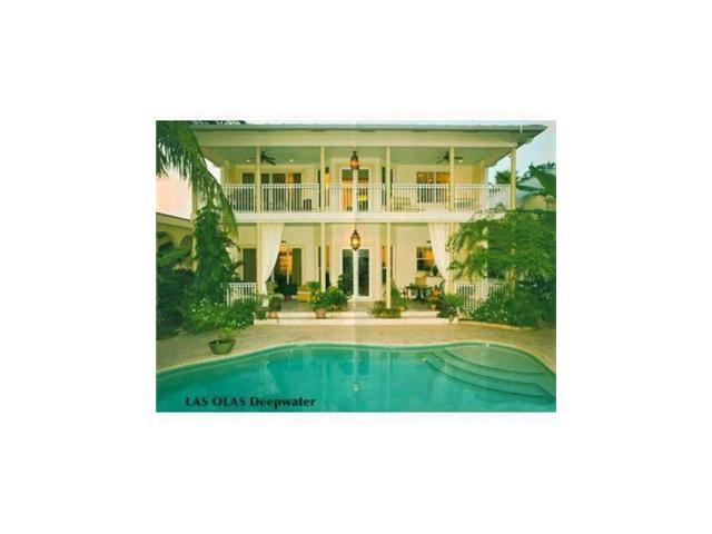2 Story Key West Style home with 75 ft waterfront, front porch, marble floors, 1st floor office with built in desk and shelving, top of line kitchen with granite, lg family room, upstairs bedrooms with terraces and all with own bath, master br with custon closet, steam shower, whirpool tub, separate vanities, surround sound throughout house, beautiful pool and spa, lush tropical landscaping, 2 car detached garage with upstairs studio, full bath, and kitchenette, Chicago pavered drive. Needs some TLC.
