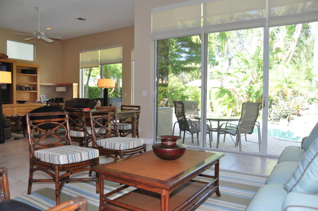 Occupied until May 31 2017. A long pavered driveway leads to this charming one-story home of 3 bedrooms & 3 baths situated in a quiet corner of Mayfair - immaculately maintained & beautifully appointed with volume ceilings; neutral tile & carpet; 42" light wood kitchen cabinetry; built-in Family Room entertainment center; walk-in closets; newer washer & dryer, newer water heater, Alarm system, NEW ROOF(2014) & a private patio with a tropical freeform pool paradise. 2 new AC units 2016. Available furnished / turnkey for an additional $25,000.