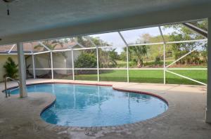 Spacious & distinctive courtyard home in desirable Hidden Valley, East Boca with 5BR/3BA. 5th bedroom would make an excellent theatre or kid's playroom. Great room with wood burning fireplace, French doors & plantation shutters. Beautiful open kitchen with granite & new SS appliances. Tranquil courtyard with venetian fountain & large private backyard with pool & screened enclosure. 2 car garage with circular driveway.
