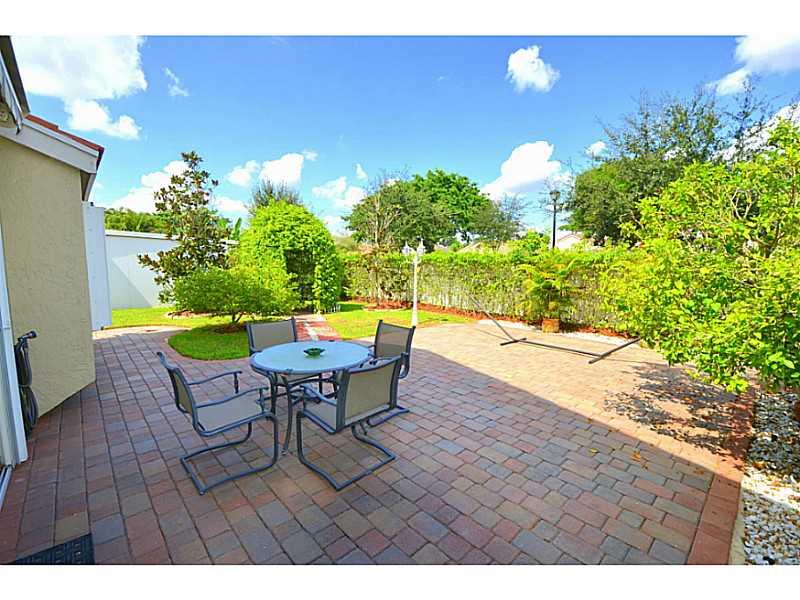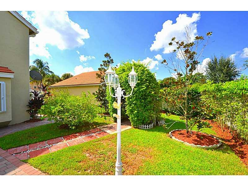 Captivating 4bed/2.5bath/2Garage corner home!Light,bright & open floor plan,updated kitchen w/wood cabinets,newer stainless appliances,tiled throughout living area downstairs,marble staircase leading upstairs to 4 bedrooms w/laminate flooring.All 3 baths have granite& are fully renovated.Newer a/c & hot water heater.Accordion shutters&new hurricane garage door. Beautiful pavers on driveway& patio in private,fenced in yard. Large electronic awning. Amazing gated community w/pool and tot lot. Great schools!