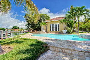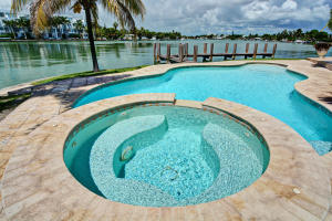 Highly Rare & Coveted Point Lot with spectacular water and sunset views from every room! 300+ feet of water front in ultra private boaters paradise. Enjoy long water views from your heated salt-water pool and spa. New 50 ft. deep water dock with no fixed bridges and easy ocean access. Bright modern and low-mainteance. Home boasts mature mango trees, hurricane impact windows and doors, Hunter Douglas window treatments, phantom screens on all french doors, air-jet tub, stainless & granite kitchen and vaulted open-concept living area. Property is fenced and gated for maximum security. Don't miss this one!