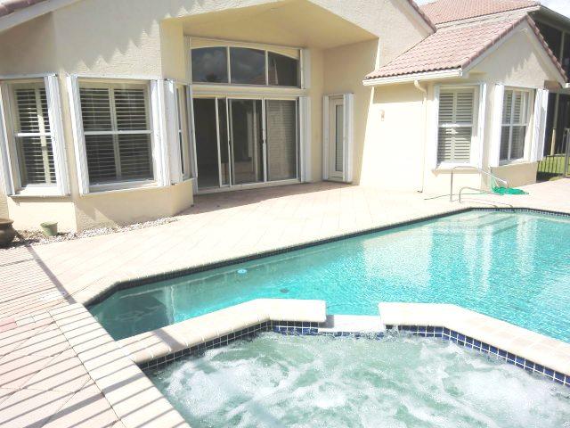 Spacious and airy Cabernet model, 1 story,4 beds,3 full baths,3 car garage on the lake with pool and spa.Lot backing south. Fresh Painted inside unit , neutral color, 2 A/C unit and one was just replaced inside unit ad compressor out side. WILL BE SALE ''AS IS'' the Heath Pool Machine doesn't Works. Tile on a diagonal in main living area and wood floor in bedrooms.Plantation shutters through out.Kitchen has Corian counter tops and back splash.Accordion hurricane shutters.Excellent schools across the street:Sunrise Park Elementary & Eagles Landing Middle. Saturnia is a 24 hrs. Man gated community & offers a resort style heated pool and clubhouse,tot lot,lighted tennis court, Gym.
