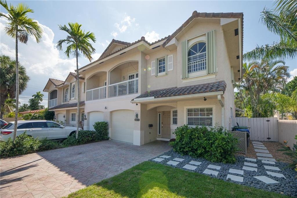 One of a kind townhome located within the highly sought after Coral Ridge community. Although it's attached on one side, this beautiful 2 bedroom, 2 and a half bath functions like a single-family home with no association dues. In addition to 2 full bedrooms, there's also a separate den currently being used as an office, plus a balcony that's perfect for your morning coffee, and a screened in patio out back for entertaining. Both bedrooms equipped with walk-in closets and en suite bathrooms. This home is perfect for the young family looking to be in a great school district (Bayview Elementary) or the individual that wants to be a short trip to local Fort Lauderdale nightlife and beaches. Anybody that's taken a stroll through this neighborhood can instantly feel the appeal of the community.