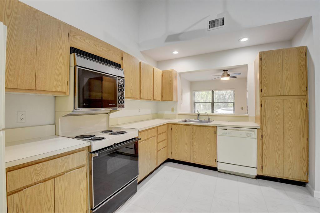 Exceptional value! Bright and open This corner townhome in cul de sac. This corner townhome offers a generous family room and kitchen overlooking a large screened patio and private garden view.There's a large master suite on main floor has lots of closets. There are 2 more bedrooms and a beautifully renovated bath upstairs New carpet on stairs, newly cleaned and sealed white tile through living areas, wood laminate in bedrooms, new paint, new window treatments, lighting and freshly landscaped.Seller will pay balance of roof assessment at close roof replaced 2017, AC 2018,WH 2017Boca Ridge offers a clubhouse, resort style pool, beautifully landscaped park like common areas and is zoned for Bocas best schoolsmanned gate security