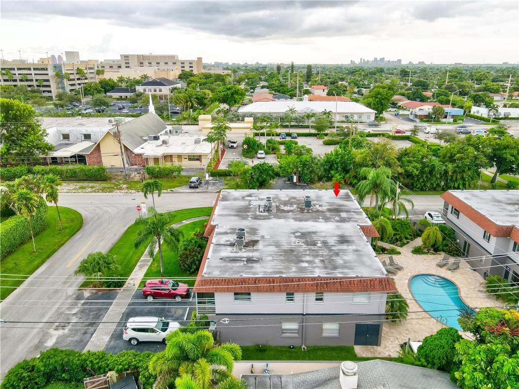 POOLSIDE CORNER TOWNHOUSE SUBSTANTIALLY UPDATED features 3 PATIOS – Includes 1 Screened, 1 Poolside & 1 Private Entrance in Small Townhouse Community. WALK 1 BLOCK to Aldi, Bowlicious, Boston Market, Holy Cross Hospital & More & Public BEACH 1 Mile! OUTSIDE YOUR DOOR THE RESORT STYLE POOL received updates to TILES, DIAMOND BRIGHT, LANDSCAPING & PAVERS. CONVENIENT, Guest Parking, Trash & Recycling Bins just across the street. FULL-SIZE WASHER & DRYER IN UNIT & WALK-IN PANTRY. Updated Electrical Panel, IN LAST 2 YEARS NEW AC, Crown Molding, Baseboards, Wood Blinds, Several Kitchen Updates like Granite Counters, Tile Backsplash, LED Lighting, SS Range, Microwave, Dishwasher & More! No Renting 1st Year. Work, Walk, Play, Exercise, Dine, Relax, Beach all Close to Where you Live! Welcome Home!