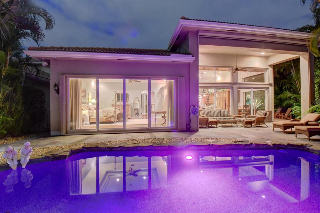 Welcome to Woodfield Country Club. This rare 4 bedroom 3 bath home sits on an oversized lot with tremendous southern exposure lake views and lush sitting gardens. This open floor plan features stainless steel appliances including Miele double ovens, maple cabinets and granite counter tops. The home also has natural gas for cooking and hurricane shutters, natural gas generator, newly installed automated interior shades and automated screens for the patio area. The pool is heated with an auto fill. This is a must see home to experience what could be yours.