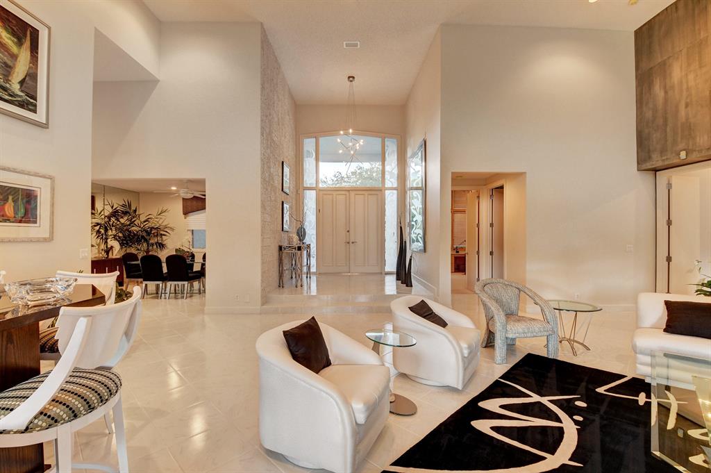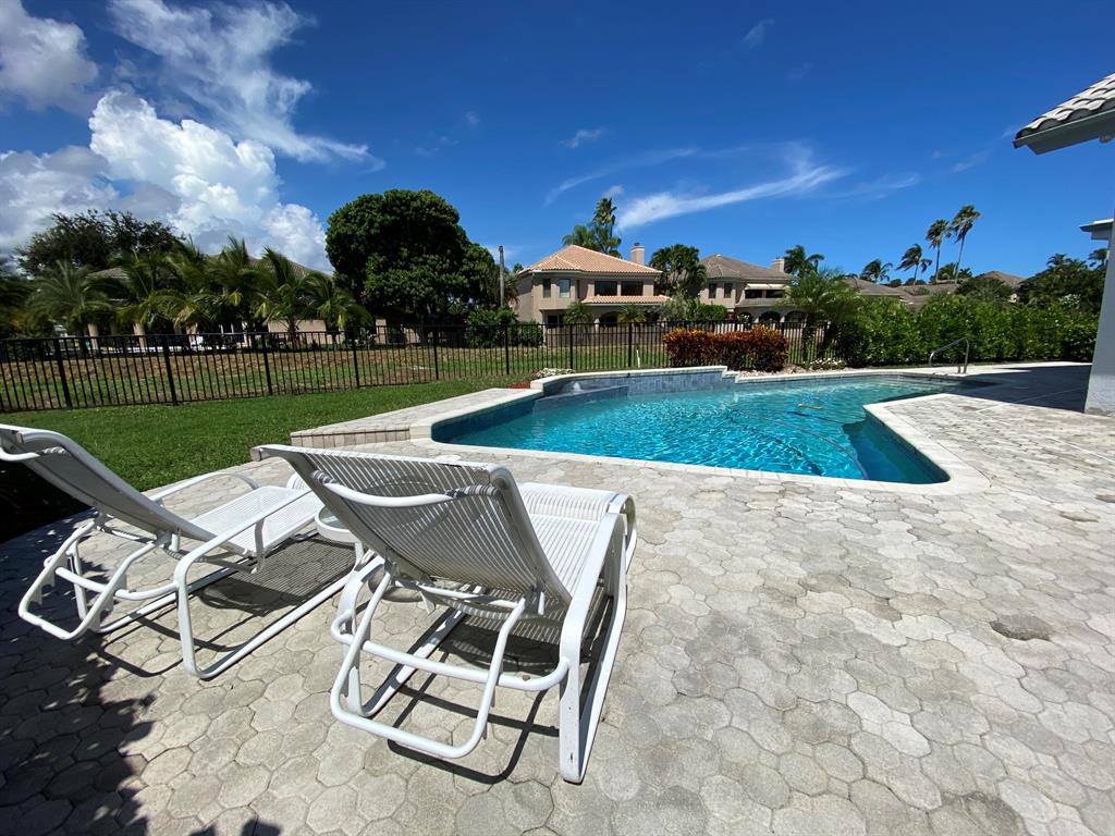 This spectacular and private single story home, featuring a split floor plan, of 3 bedrooms, 2 1/2 baths on a terrific lot, is situated on a quiet cul-de-sac. The home gets tons of natural light throughout the day, as it faces North-South, and won't get the hot afternoon sunlight from the West. It has been meticulously maintained, features vaulted ceilings, and a large open living room are perfect for entertaining with a wet bar. The roof is 11 years old, the a/c's are both 3 years old, and the pool heater is 6 years old. House has been priced to sell. Please contact us for private showing and more information. Mandatory membership to Broken Sound Country Club is required.