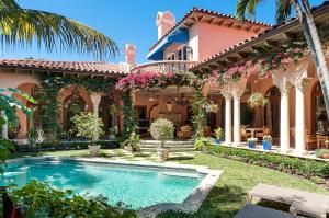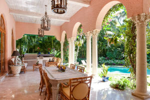 An important custom and authentically detailed state of the art 4 BR on lake block near town docks is now available. With great scale and volume throughout, its first floor master suite includes a mahagony paneled library, exquisite marble bath and dressing room that will "wow" you. A "perfect" entertainer, the romantic and oversize loggia is the best in PB featuring fountains, pool/spa, F/P,summer kitchen and lush landscaping. A MUST see for its high quality, enchanting features (pecky cypress, groin vaults, high beamed / coffered ceilings, columns, 4 fireplaces), and great outdoor living.