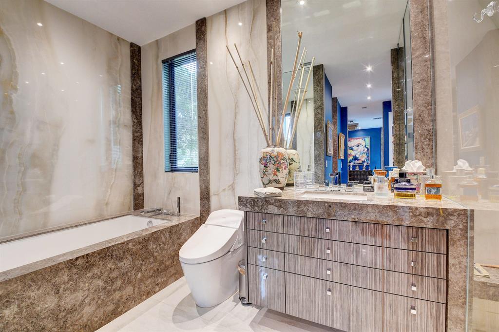 What a spectacular remodeled home renovated by two top New York designers. This 3 bedroom, 3.5 bath, plus media room and loft office has been gutted down to the cinder block. Everything is new including roof and A/C. Some of this homes features include 32'' porcelain tile, top of the line appliances, marble walls and onyx trim, Phillip Jeffries and Mya Roman off wall paper, master down with two baths & two walk in closets, full house generator, & impact glass throughout. The home sits on a great corner lot and has the most amazing Japanese garden with marble pavers, heated pool & spa, designed by a Japanese Architect. This exquisite home is done to the 9's & only has the best of the best.Call me for your private showing.