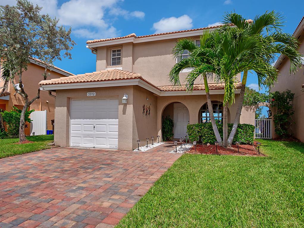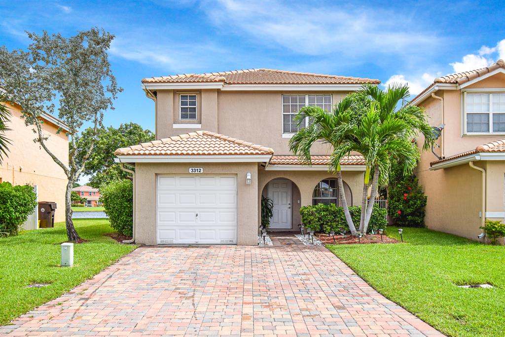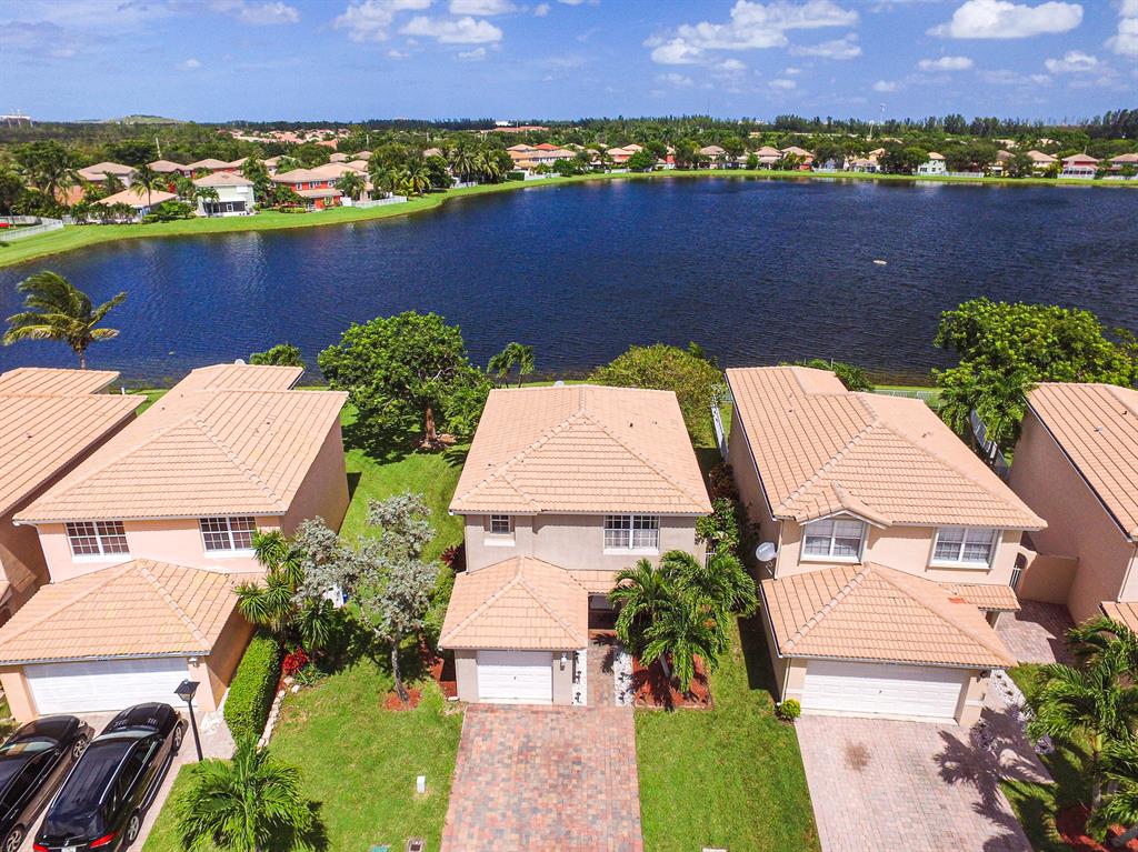 Fantastic location within Liberty Bay. Double lake views from the front and rear of this 3 bedroom, 2 1/2 bath home. You can see one of the two lakes from almost every room in the house. The garage has been converted into permitted office/den space on the first floor that's ideal for working from home. The home features a large living area downstairs with the extended family room and an open kitchen. All bedrooms are located on the second floor with a large master suite and a walk-in closet. Upgrades include a 2020 water heater, fenced yard and an expanded paver patio. Briar Bay has great community pools, jacuzzi, sports courts, playground, community room and on site excercise facility. The location provides easy access to the Turnpike, I-95, Okeechobee Blvd., West Palm and Wellington.