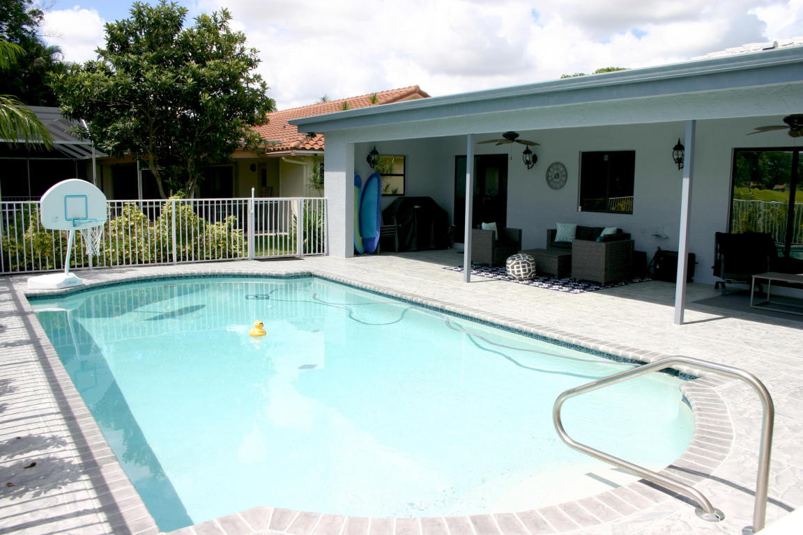 NEWLY UPDATED INSIDE & PAINTED OUTSIDE. RELAX BY THE HUGE POOL LOOKING OUT OVER THE SERENE GOLF COURSE. GATED GOLF COMMUNITY GIVES ALL THE PRIVACY YOU WANT WITHOUT HUGE MEMBERSHIP FEES. OPEN FLOOR PLAN HAS IMMACULATE KITCHEN WITH BREAKFAST AREA FLOWING INTO GIANT LIVING ROOM ALL LOOKING OUT TO POOL & GOLF COURSE. VERY LARGE FORMAL DINING ROOM OFF KITCHEN FOR FUN DINNER PARTIES. HUGE LAUNDRY WITH WASH SINK AND PANTRY OPEN INTO LARGE 2 CAR GARAGE. HUGE MASTER BEDROOM HAS 2 WALK IN CLOSETS & OPENS OUT ONTO POOL DECK. HIS & HER SINKS IN MASTER BATH WITH SPA TUB & SEPARATE SHOWER. TWO LARGE GUEST BEDROOMS ARE GREAT FOR GROWING KIDS OR FLORIDA VISITORS. THIS HOUSE IS IMMACULATE AND TOP OF CLASS IN BOCA GREENS. COME & SEE IT! YOU WILL BE IMPRESSED!!!