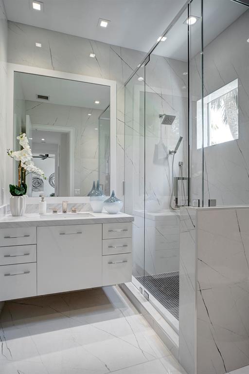 New Construction Por La Mar Three Story Beach Estate with a Modern Twist including a Detached Guest Quarters, Main Home has Four en suite Bedrooms and Five and a Half Bathrooms with a Third Floor Club Room, Fitness or Office Area, Separate One Bedroom Guest House w/ Full Bath, A hand crafted Mahogany Front Door leads to a Two Story Front Entrance Foyer with Floating Oak Staircase leading to the 2nd Floor Loft, First Floor Open Great Room with 11' Ceilings, 5' Linear LED Fireplace, 10' PGT Hurricane Doors, Opulent 9' X 8' Calacatta Style Island Kitchen with Custom Cabinetry & Thermador Masterpiece Series Kitchen Appliances including 48' Natural Gas Stove, Double Ovens with Steam Conversion, and 30'' Refrigerator/ 30'' Freezer. Display Wine Cooler, A MUST SEE PROPERTY!See More In Supplemen