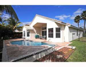 This four bedroom three bath home with three car garage sits on a south backing private home site with view of a preserve.Tile has been installed in all main living areas with tumblestone inserts in the foyer.Gourmet kitchen features wood cabinetry with pull-outs,crown molding and under cabinet lights,granite counters with undermount sink and extended breakfast bar,glass block at backsplash and large breakfast area with bay window.A butler's pantry with glass doors is located between the kitchen and formal dining room.All baths have been upgraded.Master suite features two built-in walk-in closets and a luxurious bath.You'll love the large patio area and pool with raised waterfall. One a/c replaced 7/2013. Located across street from Sunrise Park Elementary & Eagles Landing Middle Schools.