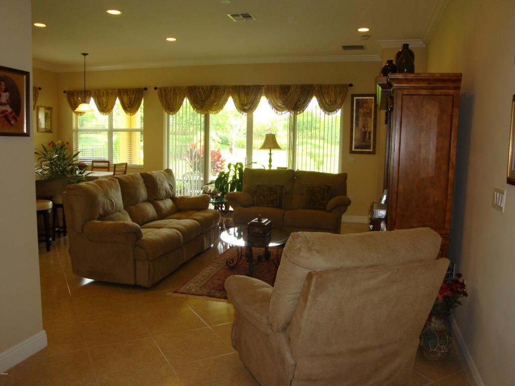 Pristine Athens Model 3 bedrooms 2 baths Single Family Home on a Park like .22 Acre Lot in the community of PortoSol...This home comes with numerous upgrades including: granite thru-out, tile on the diagonal, stainless steel appliances, upgraded tile in the baths, full home security and gutters with downspouts...10' ceilings throughout make for spacious living..The Grand Foyer opens to the Great Room with spacious Family room, eat-in Island Kitchen, and Kitchen breakfast area with lovely views onto an expansive park-like yard...The Great room opens onto a covered 22X11 Patio overlooking a long yard planted with fruit trees...The formal Dining Room off of Kitchen looks across to a den that may be used as office or 3rd bedroom with double door entry...the Master Bedroom