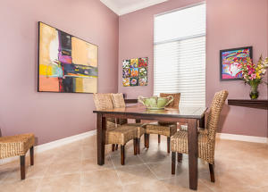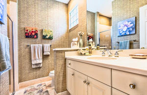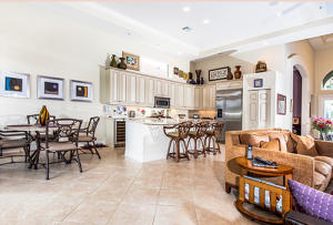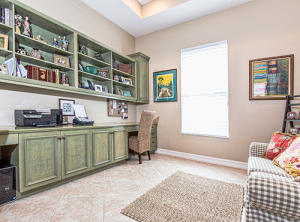 Superb Great room home with wonderful water and golf views. Move in perfect with 3BR/3BA/Study, Accordian Shutters, Phantom screen on large patio with oversized heated pool. Very upgraded cabinets and appliances in kitchen, all closets professionally done, double desks in stunning custom built in in Study, AC's and Pool Heater are two years old, wood cabinets in Master bath, flat screen TV in Master bedroom, neutral tones throughout. Villagio is a community where you can walk to the club, pool, and fitness center. All new Sports Village is incredible and resort-like. Clubhouse will be complete in 11 months. This home and Ibis should not be missed.