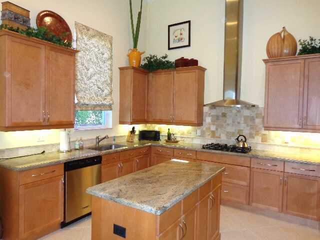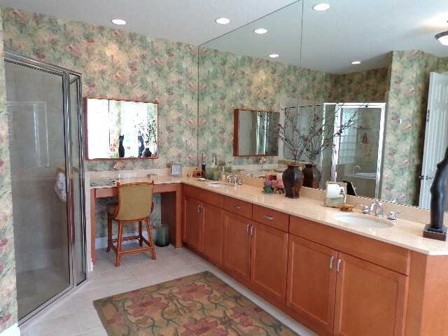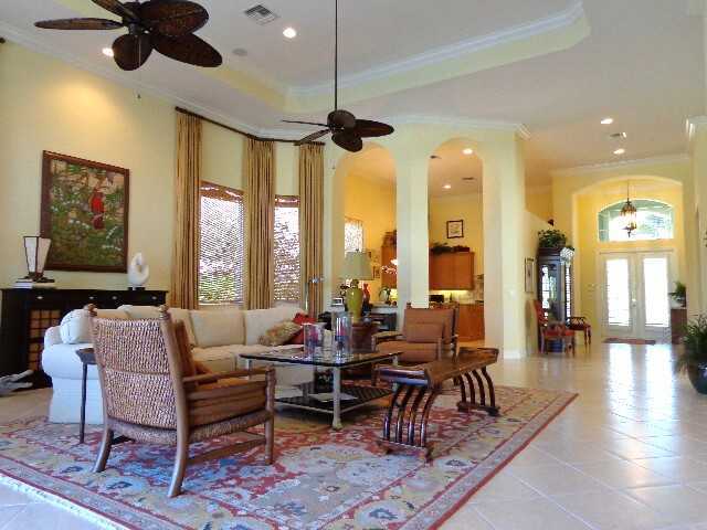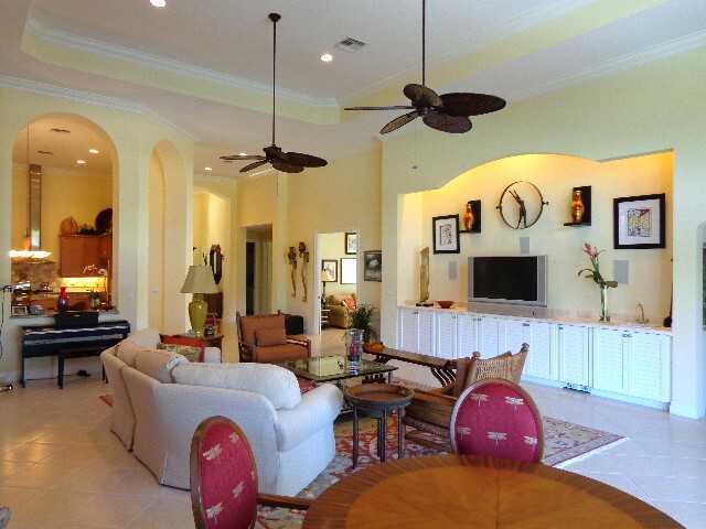 BIG PRICE REDUCTION on spectacular ''Aruba'' great room home on a fabulous large .28 acre lot with great wide lake views! Accordion hurricane shutters! Plantation shutters, blinds, & drapes! Max crown molding! Central vac! Outstanding great room features speakers in ceiling & wall plus beautiful built-in entertainment center w/tumbled stone counter, refrig, bar sink & more! Upgraded tile floor on diagonal! Nearby covered patio & lg open patio for entertaining with lg heated pool w/waterfall, & wonderful water views! ''Wow'' gourmet kitchen with beautiful upgraded wood cabinets, granite counters, custom island, tumbled stone backsplash, s/s refrig, dble ovens, microwave! 4 burner natural gas cooktop! Custom window! Spacious den with tile floor & pocket doo... (see supplement for fu