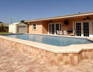 beautiful 4 BEDROOM 2 full bath home nicely upgraded.huge lot !!! MANY POSSIBILITIES!! MANY UPGRADES IN THIS BEAUTIFUL HOME ON THIS BUILDERS ACRE. BRAND NEW KITCHEN WITH STAINLESS STEEL APPLIANCES! GRANITE COUNTER TOPS, WOOD CABINETS, BUILT IN WET BAR, BOTH BATHROOMS REMODELED, GREAT LIVING ROOM WITH FIREPLACE. LOVELY POOL RECENTLY RESURFACED UNBELIEVABLE CIRCULAR BRICK PAVER DRIVEWAY FOR UP TO 12 VEHICLES OR MORE. ACCORDION HURRICANE SHUTTERS, NEWER ROOF. EXTRA BUILDING FOR THE HOBBY PERSON TOO. GARAGE IS CURRENTLY CONVERTED TO AIR CONDITIONED LIVING SPACE THAT CAN BE TURNED INTO A BEDROOM AND BATH OR GAME ROOM. PRICE REDUCTION OPEN HOUSE ON SUN Nov 16th - 12pm-3pm