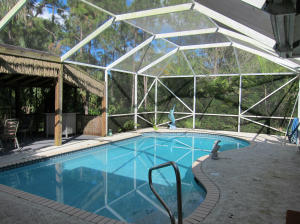 BEAUTIFUL HOME WITH POOL!NEWER KITCHEN WITH GRANITE COUNTER TOPS, STAINLESS STEEL APPLIANCES, MAPLE CABINETS. OFFICE OFF MASTER BEDROOM (8 X 7). HOME COMPLETELY TILED, VAULTED CEILINGS, FRENCH DOORS, TRAY CEILING IN MASTER BEDROOM WITH LARGE WALK-IN CLOSET, CABANA BATHROOM LEADS TO SCREENED POOL WITH NEWER DIAMOND BRITE, TIKI BAR, WATERFALL, SPRINKLER SYSTEM FOR ENTIRE LOT - 1.15 ACRES!! TWO WELLS - 1 FOR DRINKING AND THE OTHER FOR SPRINKLER SYSTEM, A/C 4 YEARS OLD, WATER TREATMENT SYSTEM APPROX. 3 YEARS OLD.