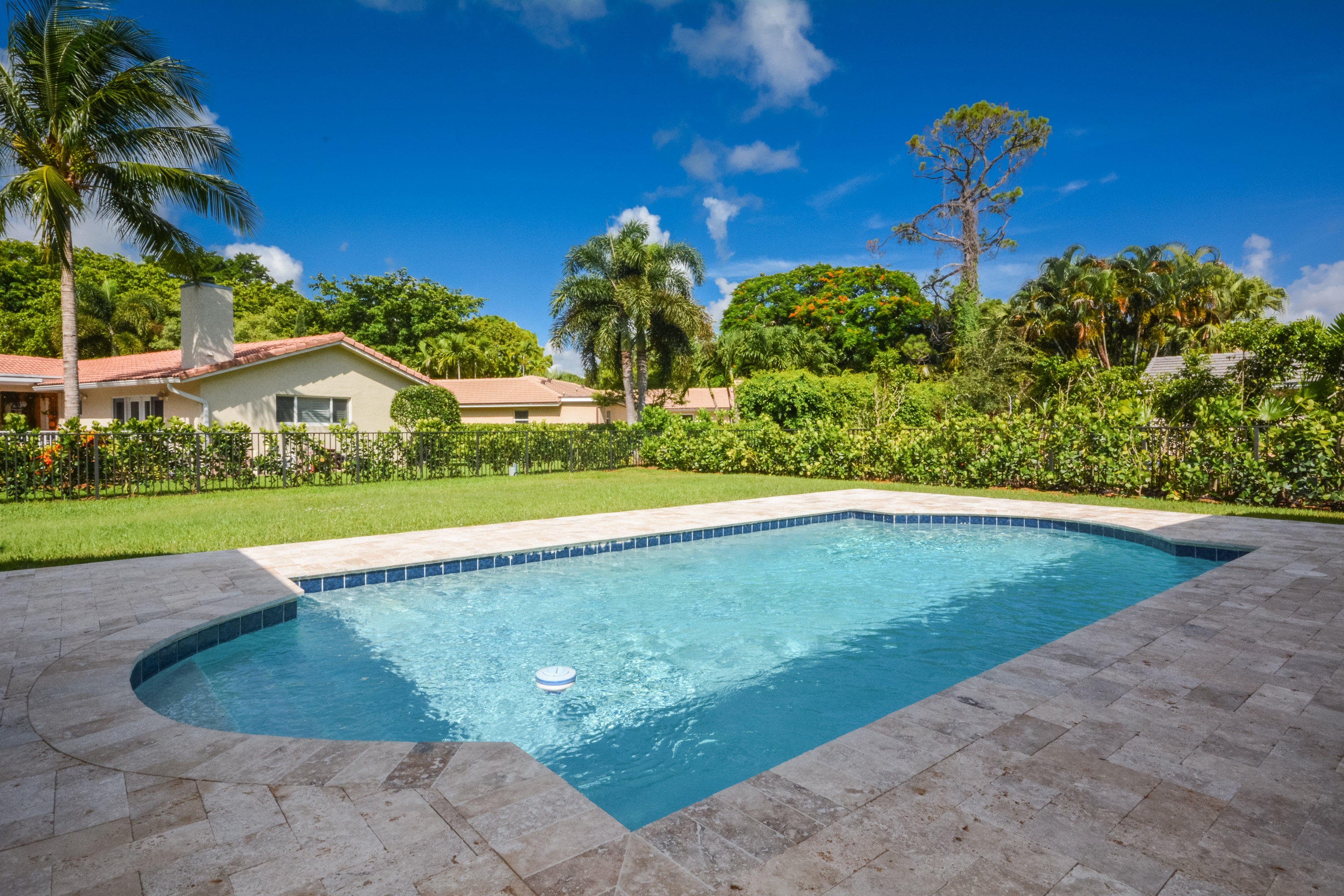Beautifully renovated 4 bedroom, 2 bath home situated on a large corner fenced lot. Gorgeous kitchen with white wood cabinets, granite countertops, and stainless steel appliances, and large island. Redone bathrooms. Coral fireplace, and built-ins in the family room. Large tile floors on the diagonal in the main living areas. Marble patio area with inground pool, and large fenced backyard.