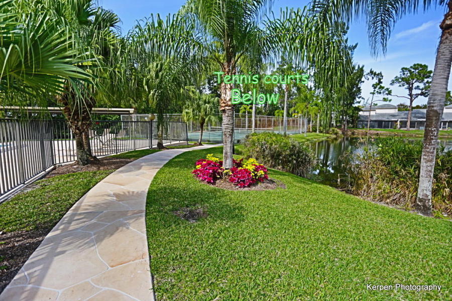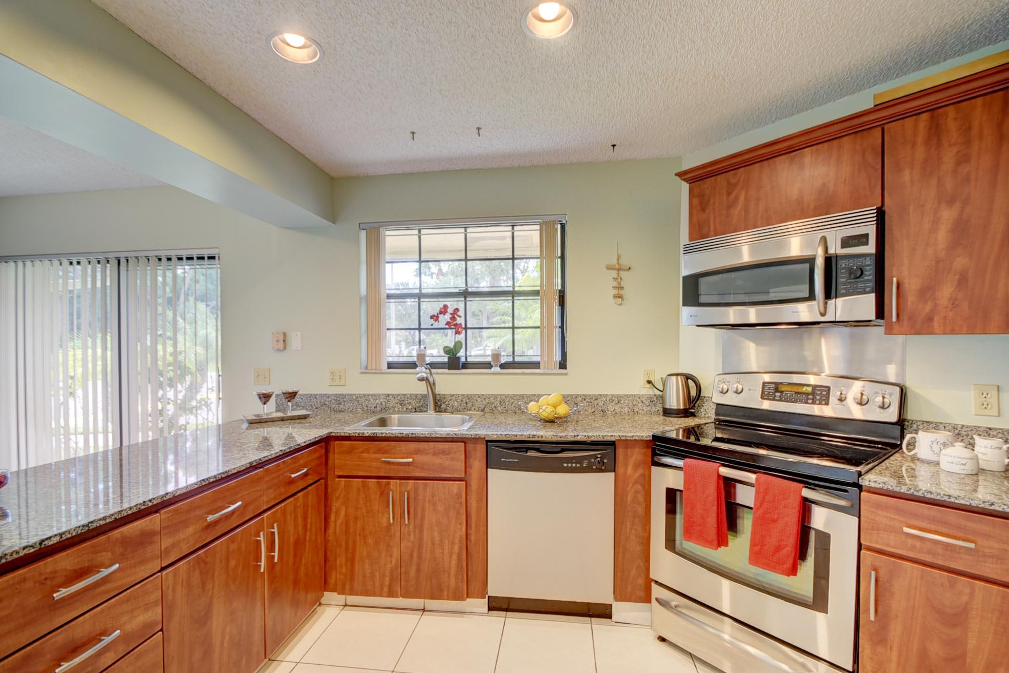 Peaceful & serene water front corner villa w/3 bedrooms and 2.5 bathrooms. High ceilings add to the spacious feeling. Eat-in kitchen w/granite counter tops & newer SS appliances. Spacious Master Suite w/lake view is downstairs w/big walk in closet, updated bathroom w/granite/jetted tub/separate shower & more! Tiled throughout 1st floor/wood laminate throughout 2nd floor. Enjoy your HUGE screened/covered porch overlooking the sparkling lake. Inside laundry room. Lots of closets/storage. Large 1 car garage. Association installed new roof & gutters, painted exterior & paved roads January 2017 - Affordable HOA fee includes Basic Cable,lawn/landscaping, community pool, tennis, man gated security, + reserves for roof & painting. Accordion Shutters/Great schools/pet friendly community.