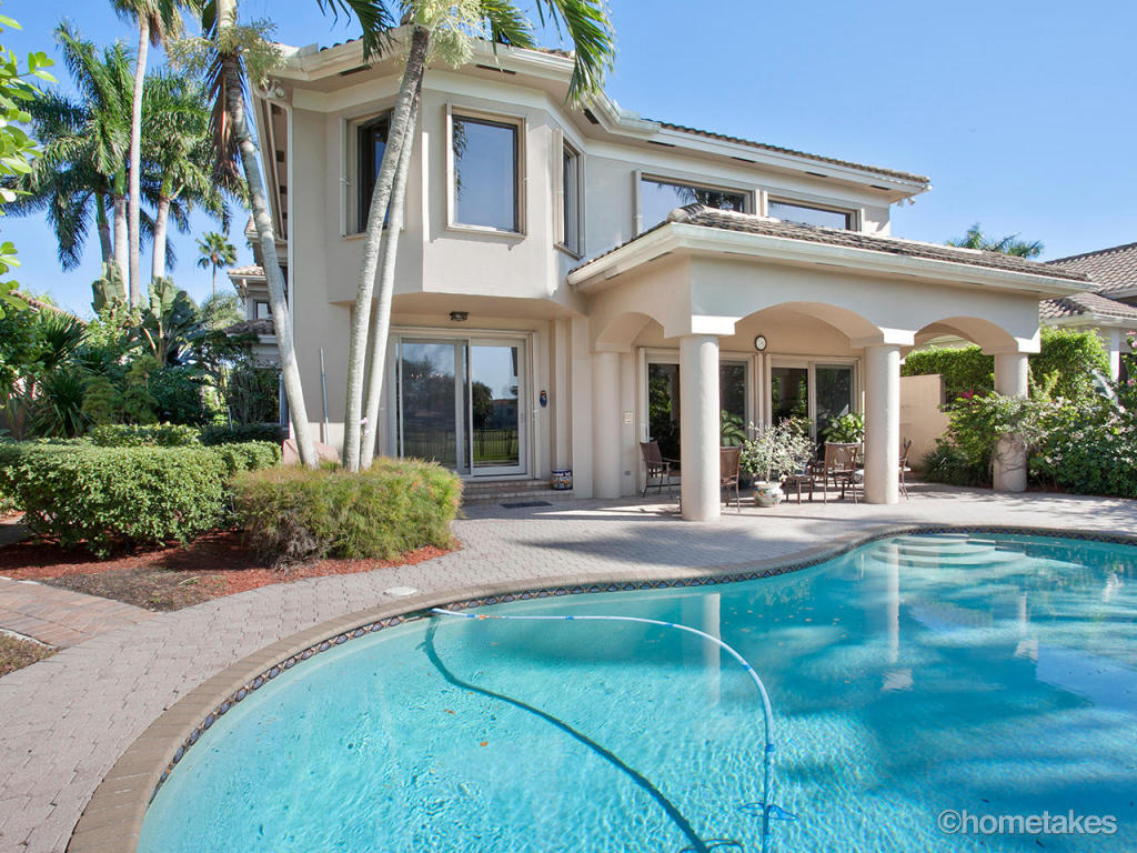 Bargain price! Unbelievable value! Owner motivated - has purchased a new residence. 4000+ sq.ft. on Prime golf course lot with great views. Newer roof 2010, marble floors, plantation shutters, Hunter ceiling fans, beautiful landscaping surrounding the pool and patio for great privacy - Every bedroom with it's own bath - One bedroom downstairs, master + 2 other bedrooms upstairs - Built in breakfront/bookcase in family room - Exterior painted June 2015 - Accordion shutters for windows and doors - 2nd floor also CBS construction, poured concrete between floors. This house is in great condition.