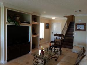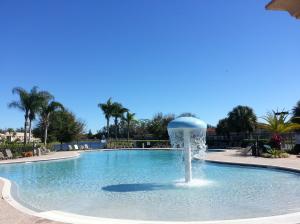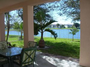 Right on the lake in Liberty Isles, this home has fantastic views from the house and patio. This backyard has a great upgraded patio under fixed roof to provide shade and a place to grill and enjoy the lake in the fully fenced in back yard. Tastefully done built in entertainment center in the living room. The downstairs living areas are all tiled. Stairs and upstairs hallway are wood floors, with carpet in the bedrooms. Community has a pool, fitness room, tennis and clubhouse. Located just minutes from the turnpike.
