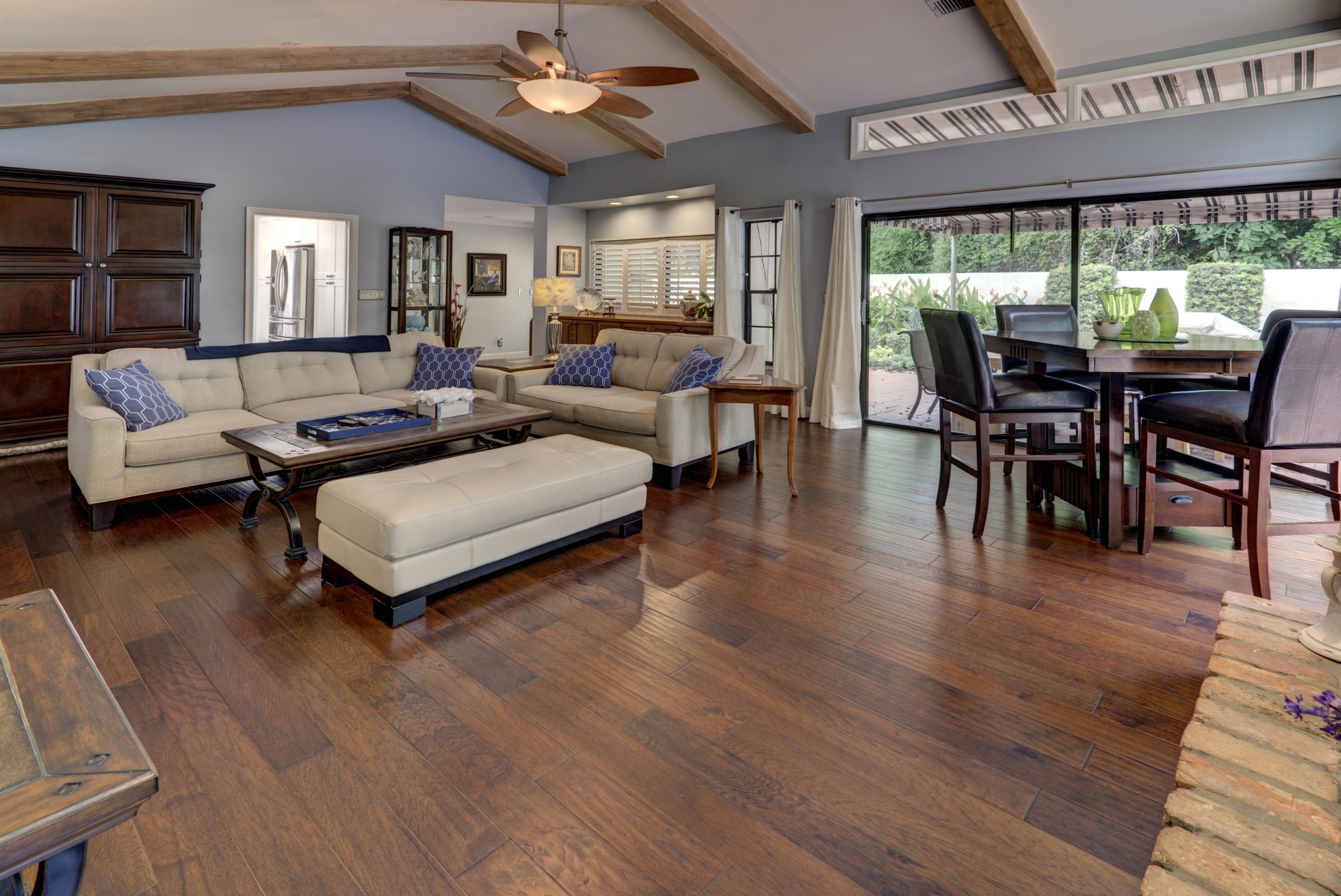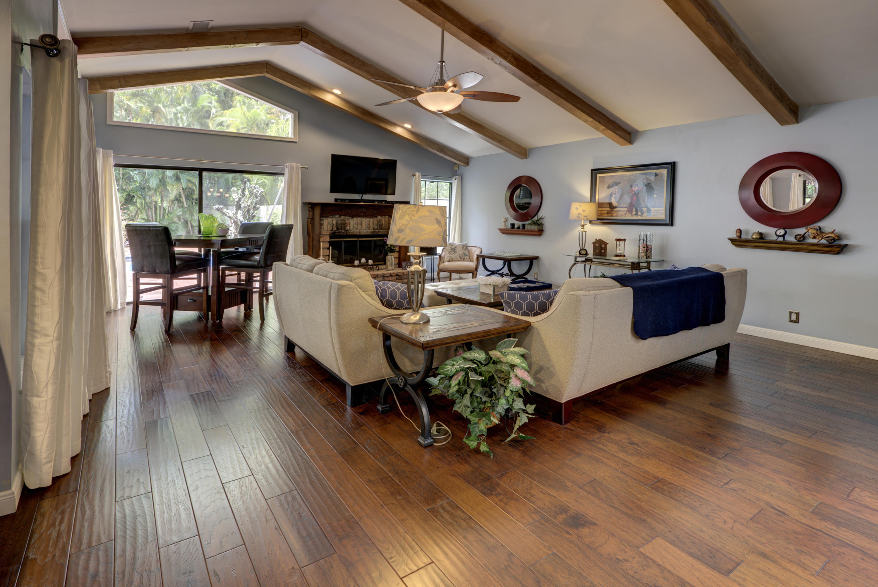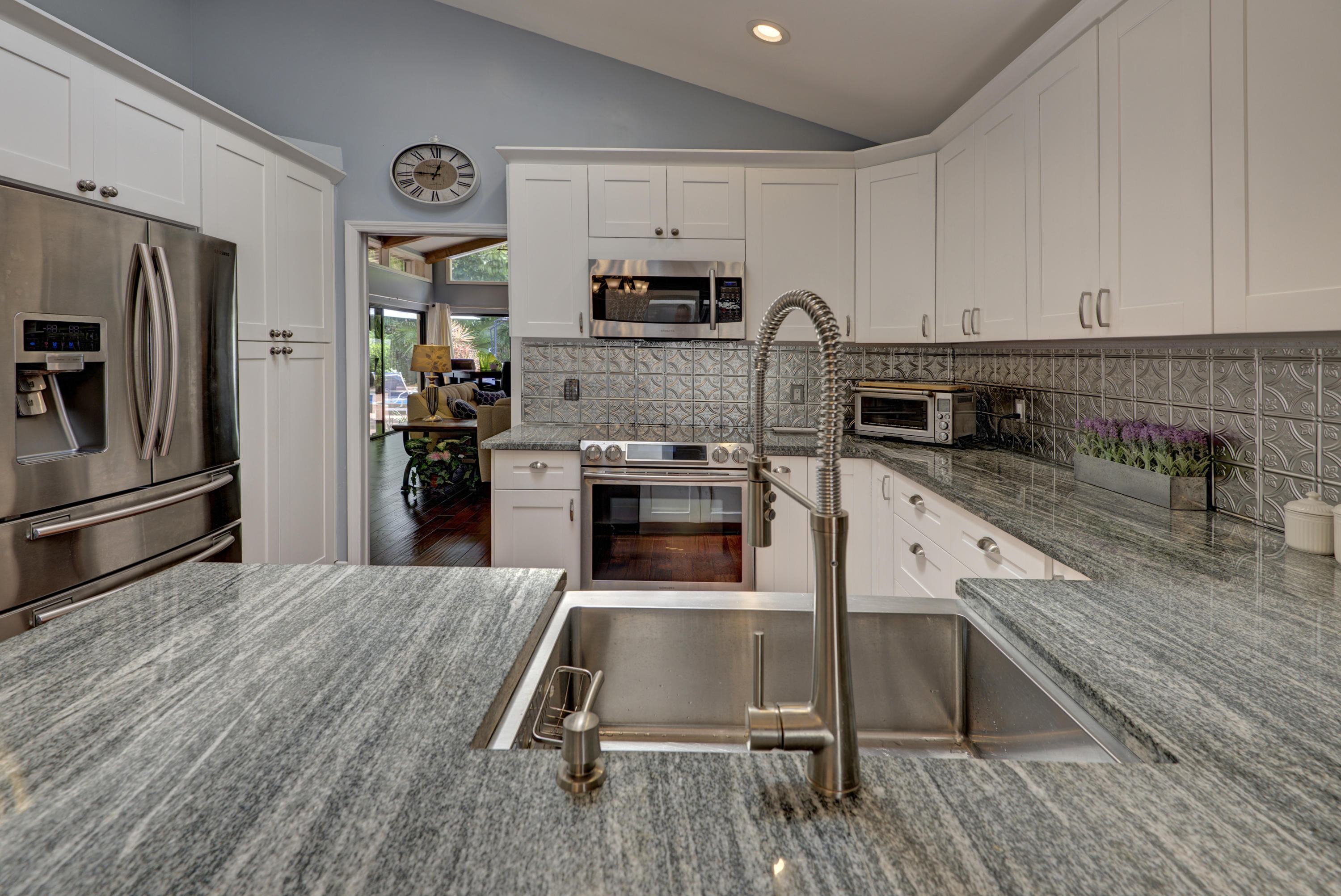 You Can Have it All; Style, Charm, Function, Privacy, Tranquility & Location with this Gorgeous Remodeled Home Ideally Located in the Heart of Boca Raton. The Home Has Been Updated from Floor to Ceiling with the Style & Charm You Find from Designers on HGTV. The Living Room Features Wide Open Views of the Private & Generous Patio Deck and Pool Area. Vaulted Wood Beamed Ceilings Offers a Spacious Feel w/ Plenty of Natural Light. The Dark Wood Floors & Real Wood Burning Brick Fireplace Help Add to the Warmth of the Room. The Kitchen is Exquisitely Redone in the French Contemporary Design. White Hardwood Cabinetry, a STUNNING Grey Granite Countertop, a Stainless Steel Farmers Sink, High End Stainless Steel Appliances, & a Decorative Tin Backsplash All Highlight the Form While the Function of