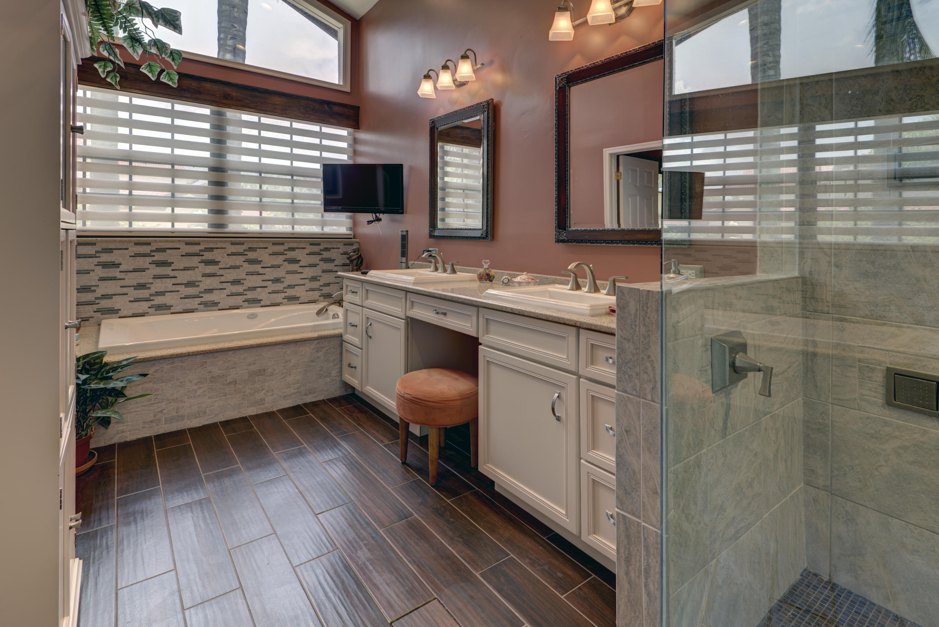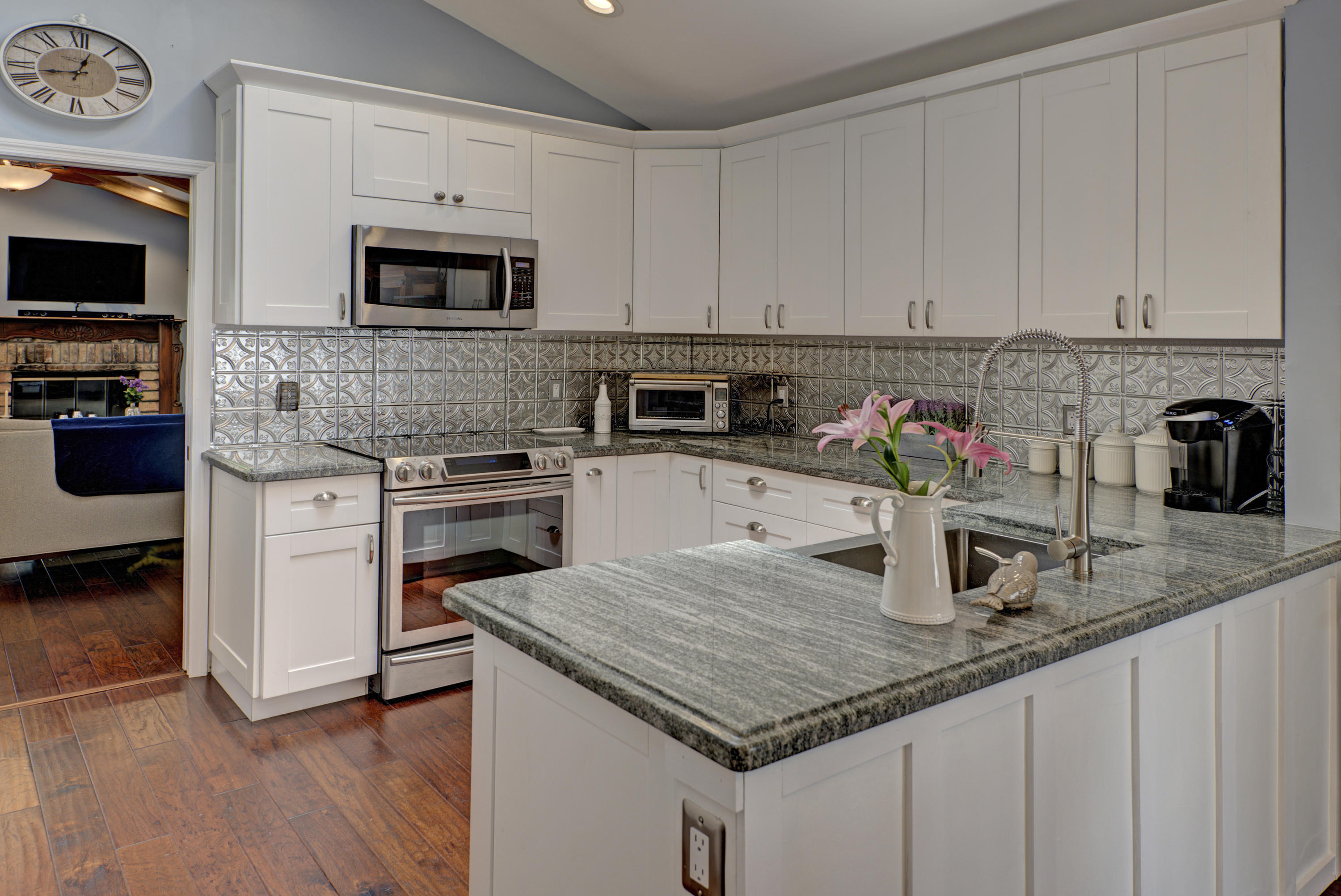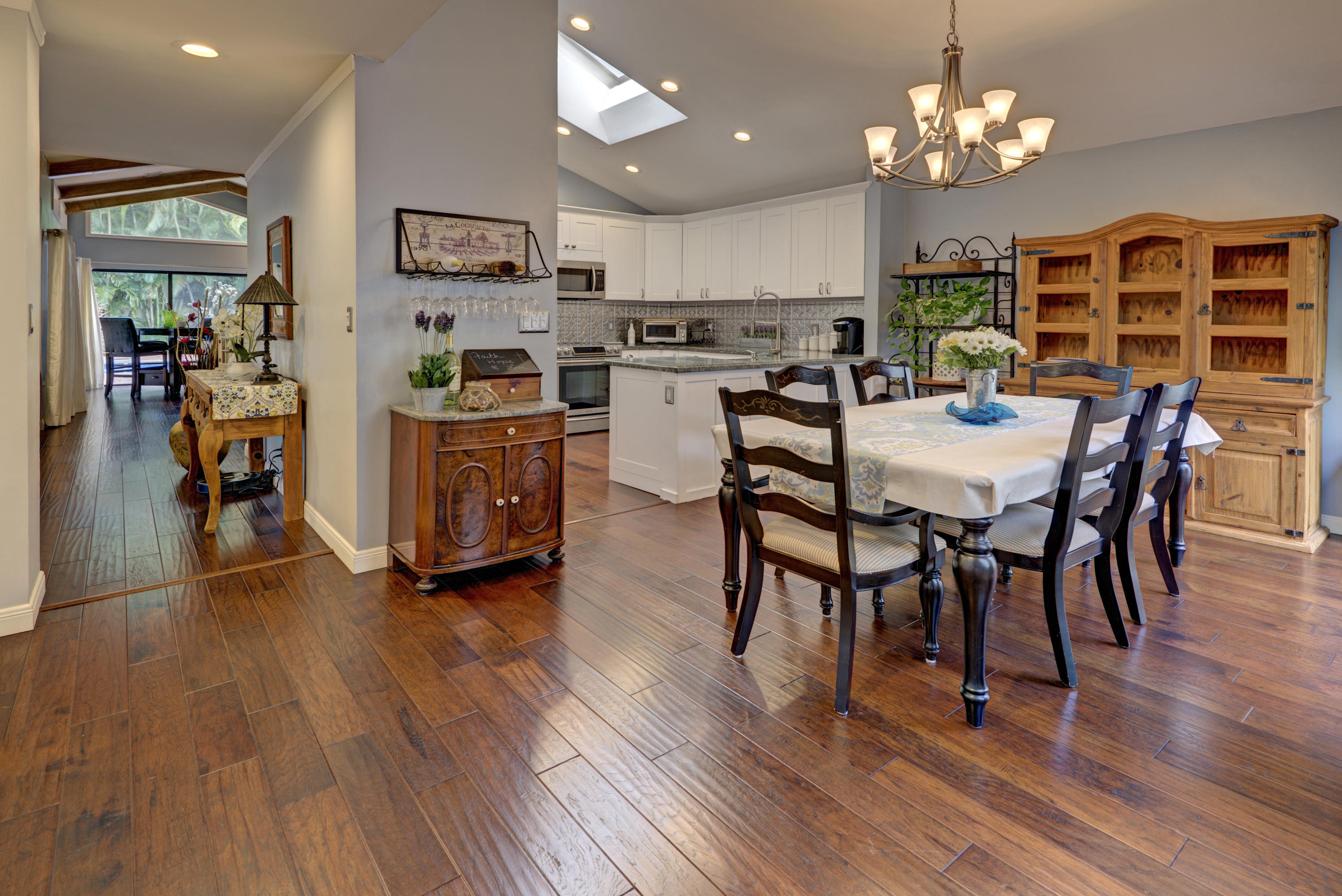You Can Have it All; Style, Charm, Function, Privacy, Tranquility & Location with this Gorgeous Remodeled Home Ideally Located in the Heart of Boca Raton. The Home Has Been Updated from Floor to Ceiling with the Style & Charm You Find from Designers on HGTV. The Living Room Features Wide Open Views of the Private & Generous Patio Deck and Pool Area. Vaulted Wood Beamed Ceilings Offers a Spacious Feel w/ Plenty of Natural Light. The Dark Wood Floors & Real Wood Burning Brick Fireplace Help Add to the Warmth of the Room. The Kitchen is Exquisitely Redone in the French Contemporary Design. White Hardwood Cabinetry, a STUNNING Grey Granite Countertop, a Stainless Steel Farmers Sink, High End Stainless Steel Appliances, & a Decorative Tin Backsplash All Highlight the Form While the Function of