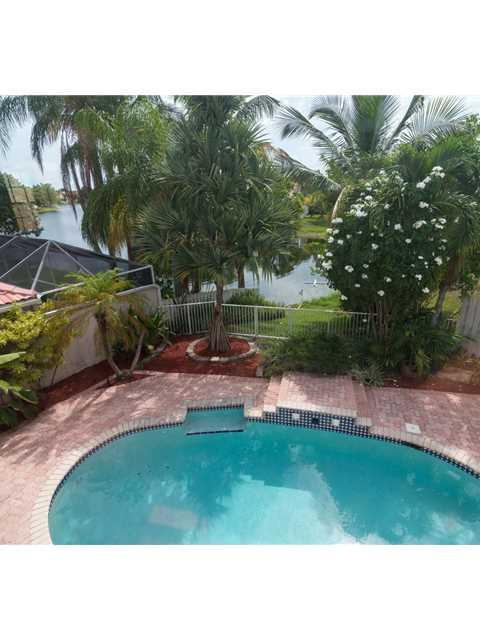 PRICE REDUCED/GREAT OPPORTUNITY/ 3 BEDROOM 2.1 BATH TWO STORY / SPECTACULAR LAKE LOT/ FANTASTIC VIEWS/ GORGEOUS POOL WITH SPA JETS, FOUNTAIN AND PAVERED OPEN AIR PATIO/ LARGE FENCED YARD/ ACCORDION HURRICANE SHUTTERS/ FIRST FLOOR DOUBLE DOOR ENTRY, NEUTRA L ACCENTED TILED FLOORS/ STAIRS AND BEDROOMS UPSTAIRS ARE WOODEN/ UPDATED WOODEN KITCHEN/GRANITE COUNTERS/STAINLESS STEEL APPLIANCES/LOVELY WATER VIEW FROM MASTER BEDROOM/MASTER BATH FEATURES SEPARATE JACUZZI TUB AND SHOWER, DUAL SINKS/EXCELLENT SCHOOLS