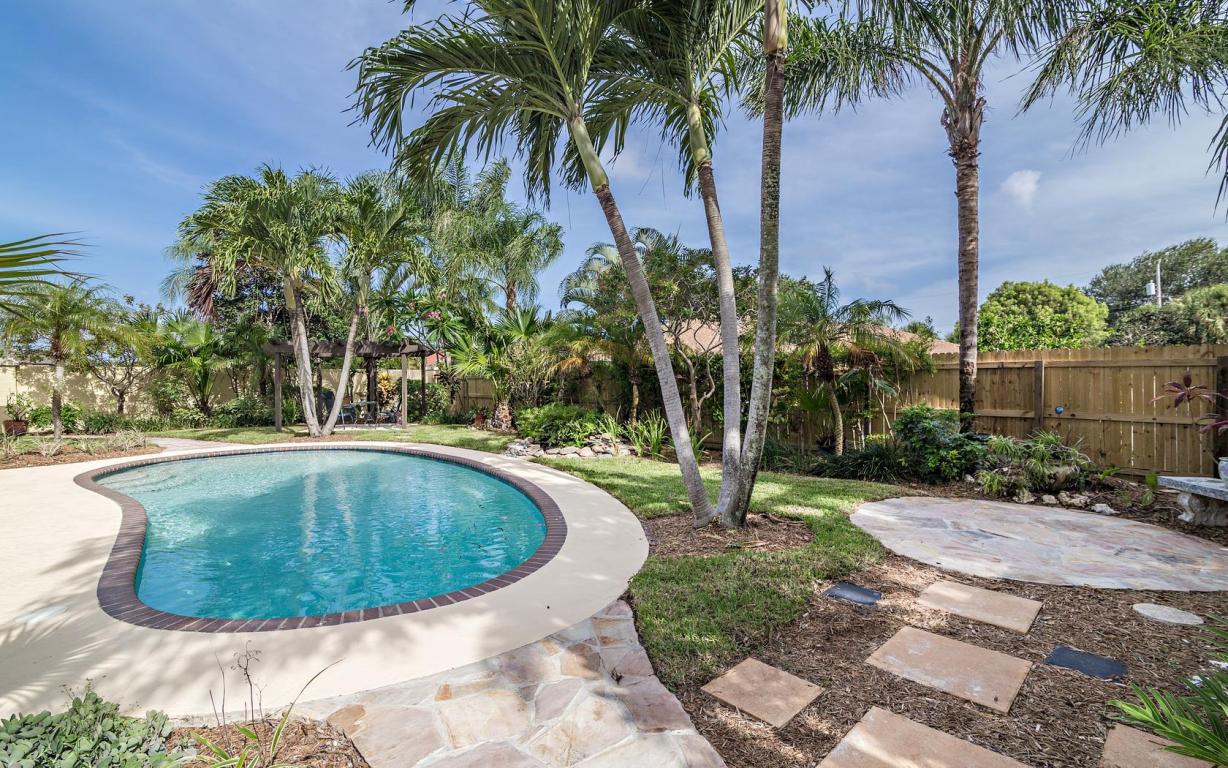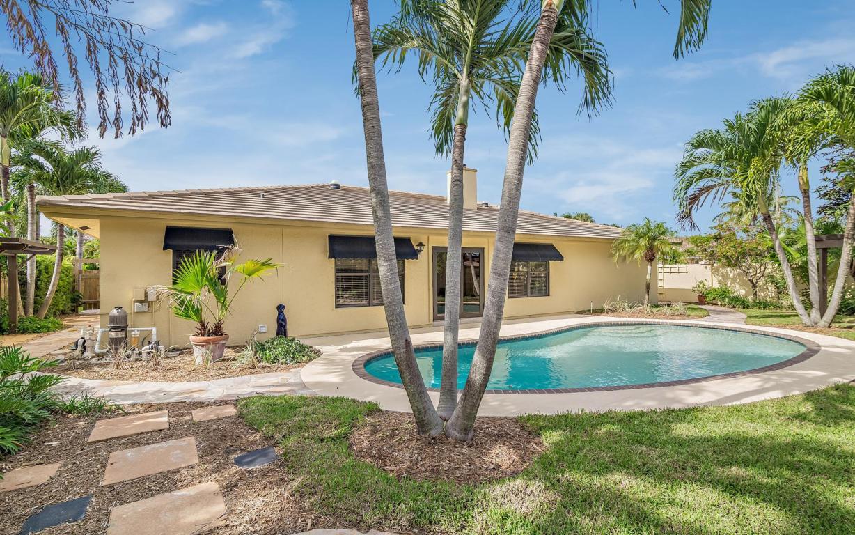 Gorgeous & well maintained one story CBS pool home on one of the most desirable strets in NPB. Endless granite kit coutners, New S/S app., overlooking family room with tumble marble wood burning fire place french doors to family room leading to beautiful Inground pool & flag stone walkway & patio. circular paved driveway. Tile roof 2003