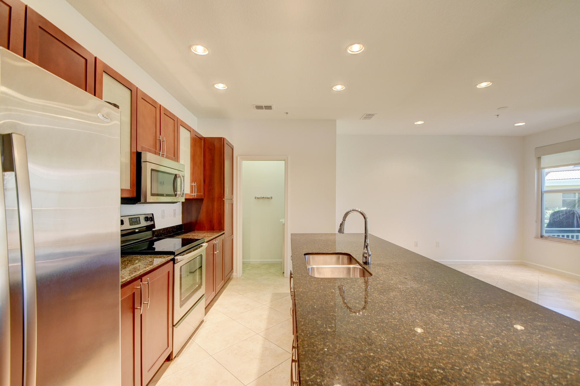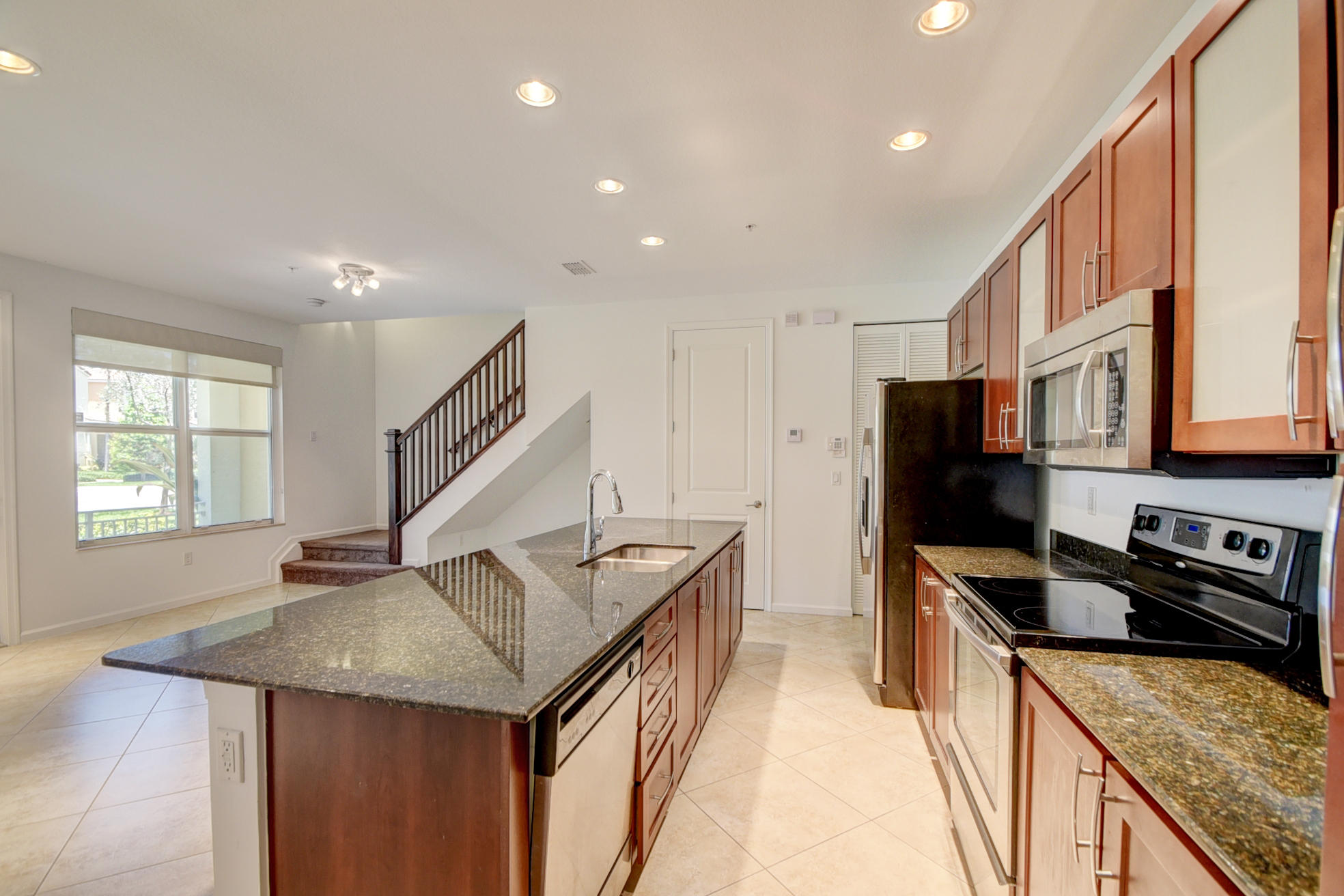 Gorgeous centrally located in the heart of Boca Raton! Upgraded two story townhome with park-like view from front patio. Kitchen upgraded with granite counters, stainless steel appliances & wood cabinets. Granite center island with breakfast bar. Separate laundry room with full size washer/dryer. Half bathroom on first floor. Two master suites both feature large closets. Built in closet system. Both bathrooms upgraded with wood cabinets & granite counter tops & double sinks. All impact windows. Two car garage PLUS a driveway long enough to park two more cars. Enjoy beautiful pool & clubhouse with fitness center and club room. Walk to restaurants, fitness centers, library & shops. New shopping centers near by. SEE ADDITIONAL COMMENTS