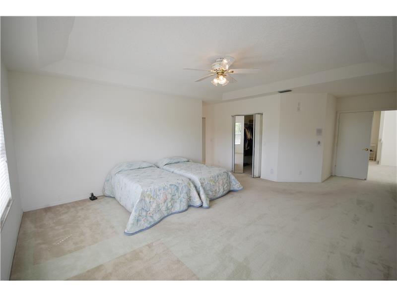Well maintained lake-front pool home on a large pie shaped lot at the end of a cul-de-sac w/ longest lake view in the community. Full bed & bath down, master suite up w/ separate tub/shower + 2 walk-in closets. Stainless appliances in kitchen, newer 3 zo ne A/C w/ UV protection, full hurricane protection, generator & a new roof in 2006. Private yard w/ raised spa built in to the pool. Luxury family community offers 24/7 guard-gated security, clubhouse, community pool, tennis & fitness. 'A' schools. WOW!