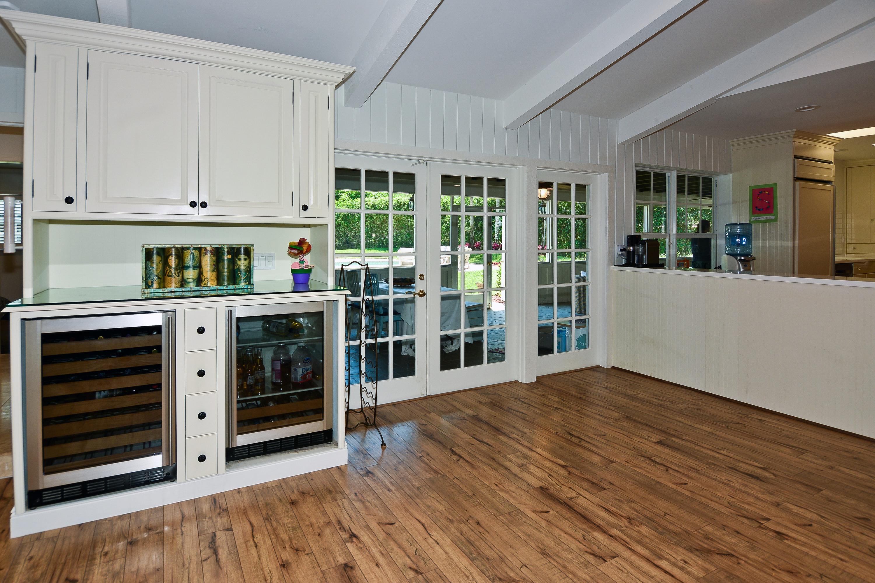 Beautiful 6 bedroom designer decorated masterpiece on a sprawling impeccably manicured 30,000 sf waterfront lot. Just steps away from the park on a peaceful tree lined street. Enjoy the utmost in privacy and tranquility from your pool, spa, and breezy screened in porch. This open floor plan home features a wood burning North Carolina River Rock fireplace as a grand centerpiece. The country French kitchen which opens graciously to the breakfast nook and living room is equally endearing with custom cabinets and dual wall ovens. Wood, marble, and porcelain flooring create a beautiful tapestry of warmth and texture throughout this updated home. Spacious master suite with Zen-inspired spa bath including a seamless glass enclosure, dual copper sinks, and river rock.