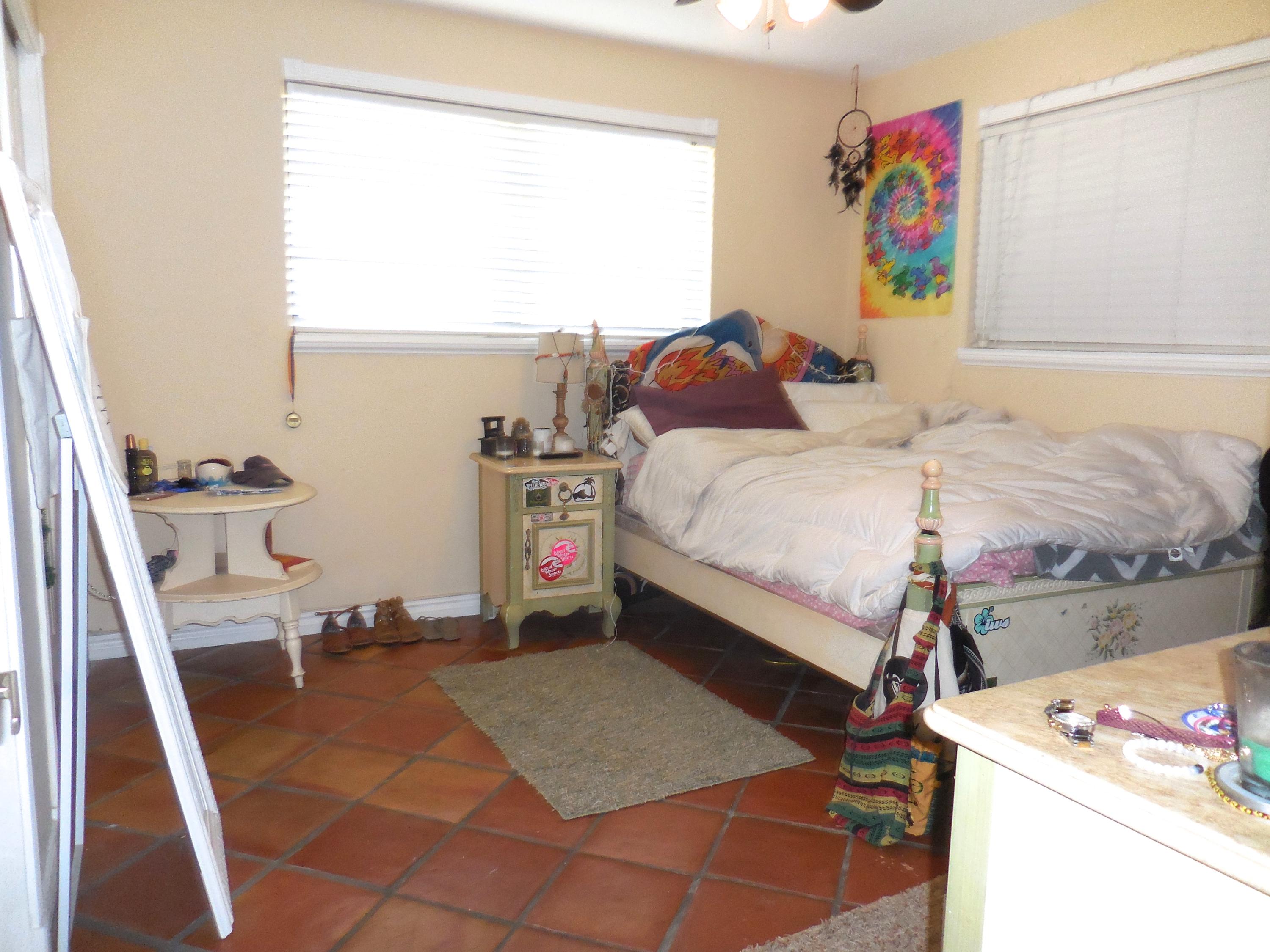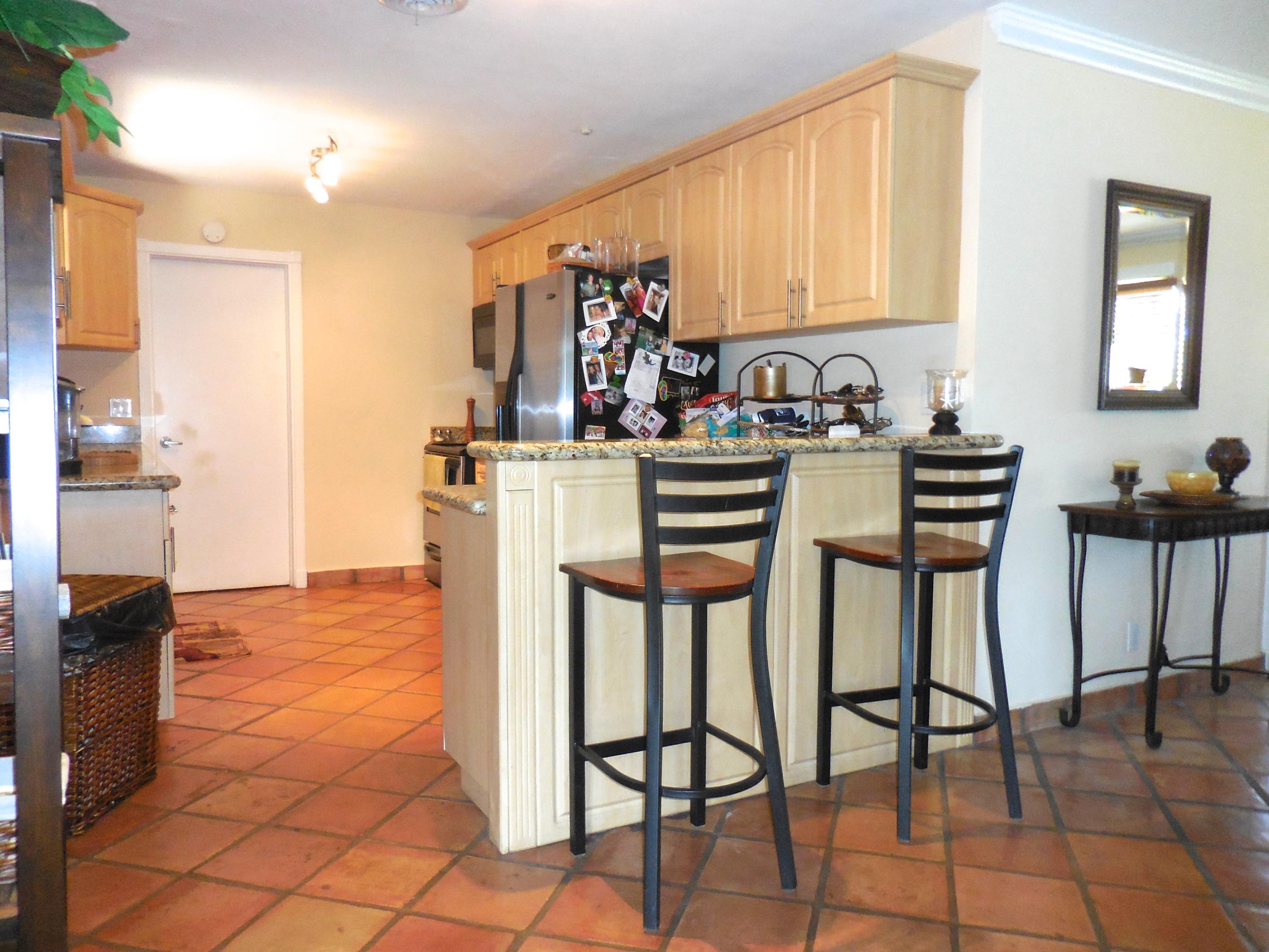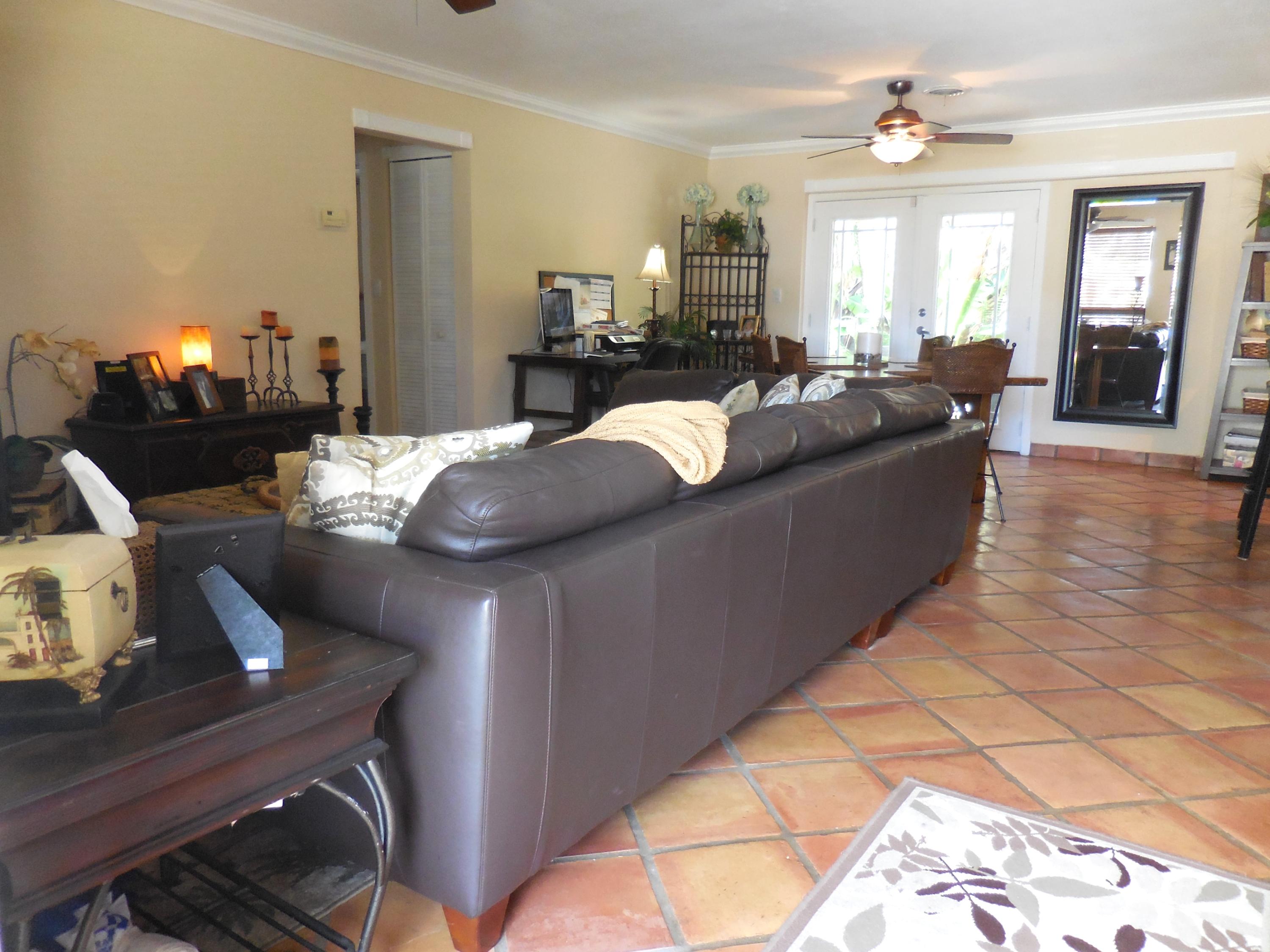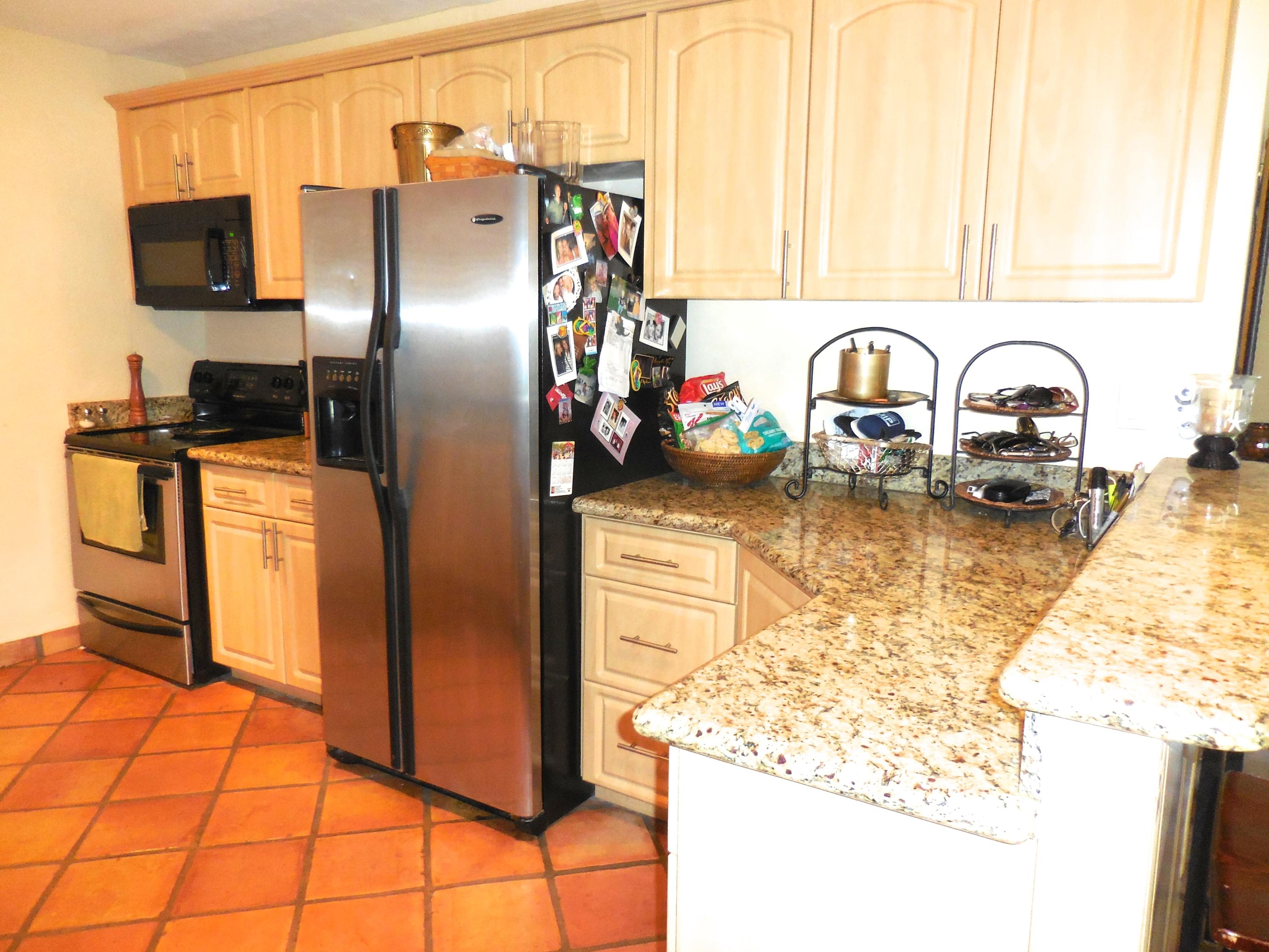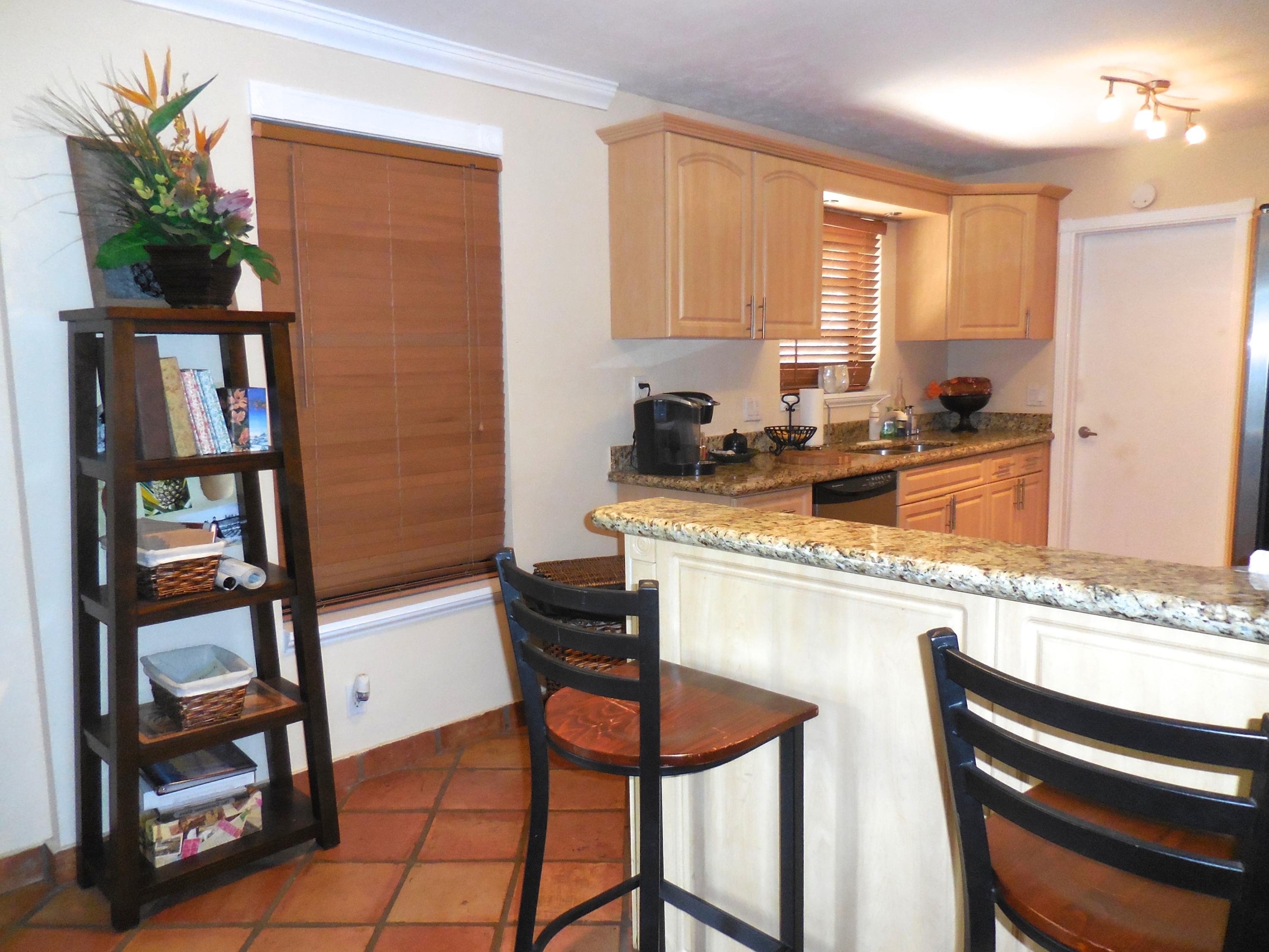 CBS single story home in east Boca, with no association fees! 3 bedrooms, 2 baths and carport in this updated home. Mexican tile floors thruout the entire interior, and french doors to backyard patio. Granite kitchen, wood cabinets opened up to living room/dining area. NEW ELECTRIC PANEL . STORM SHUTTERS. 2014 HWH. Updated baths with granite counters, new vanities, tiled walls. TERMITE BOND. Approx 8x10 covered patio, shed, plus huge fenced yard. Split bedroom plan for privacy. Interior washer/dryer and storage area.