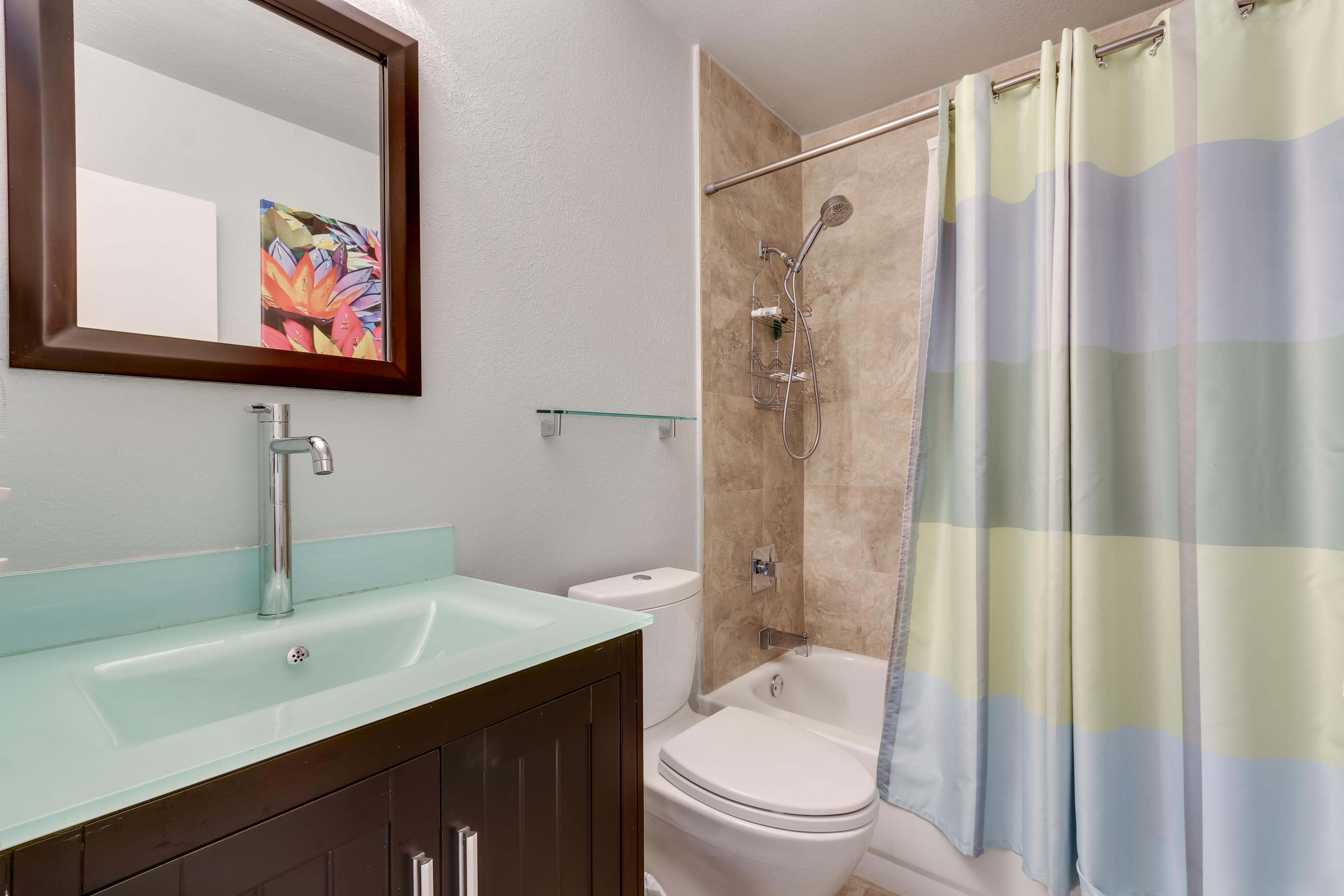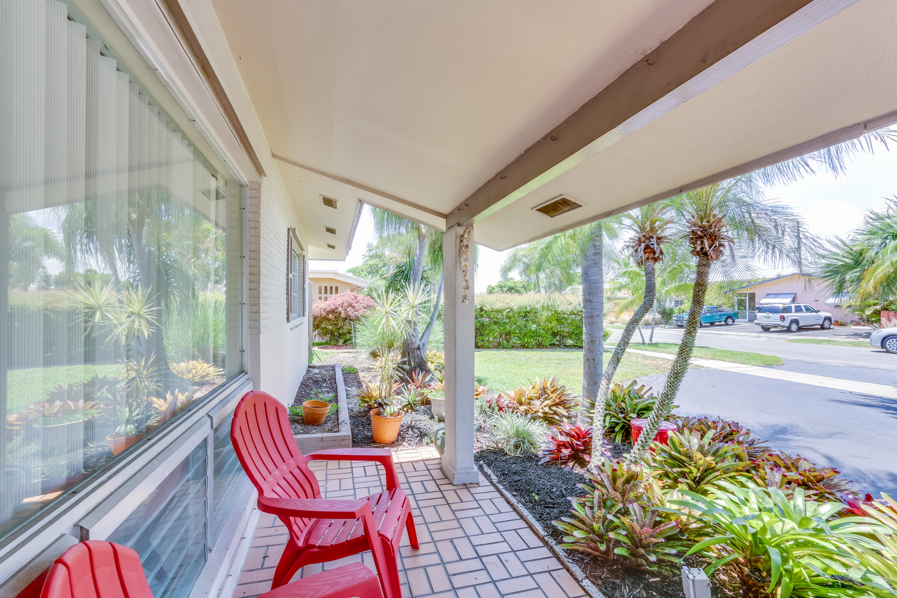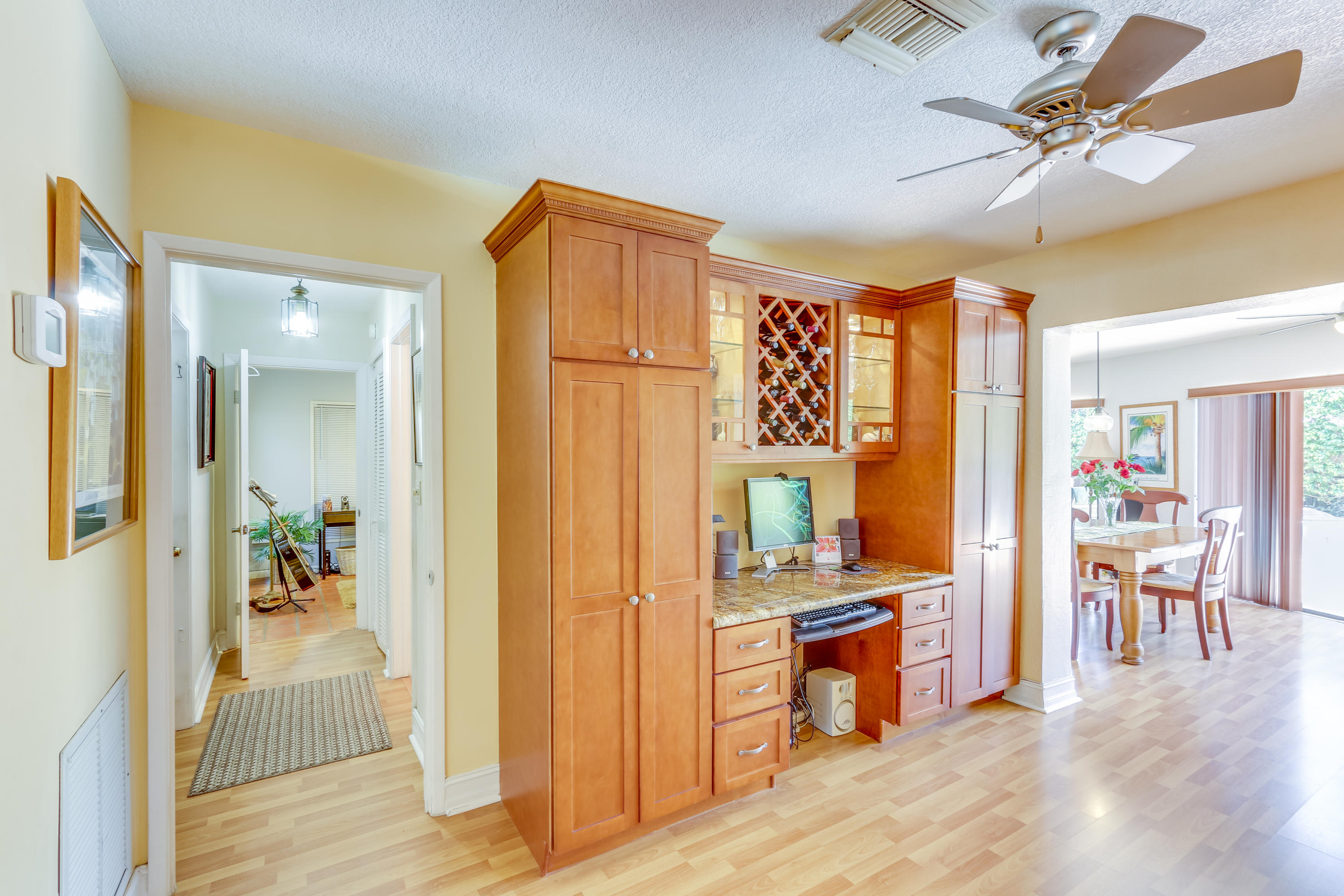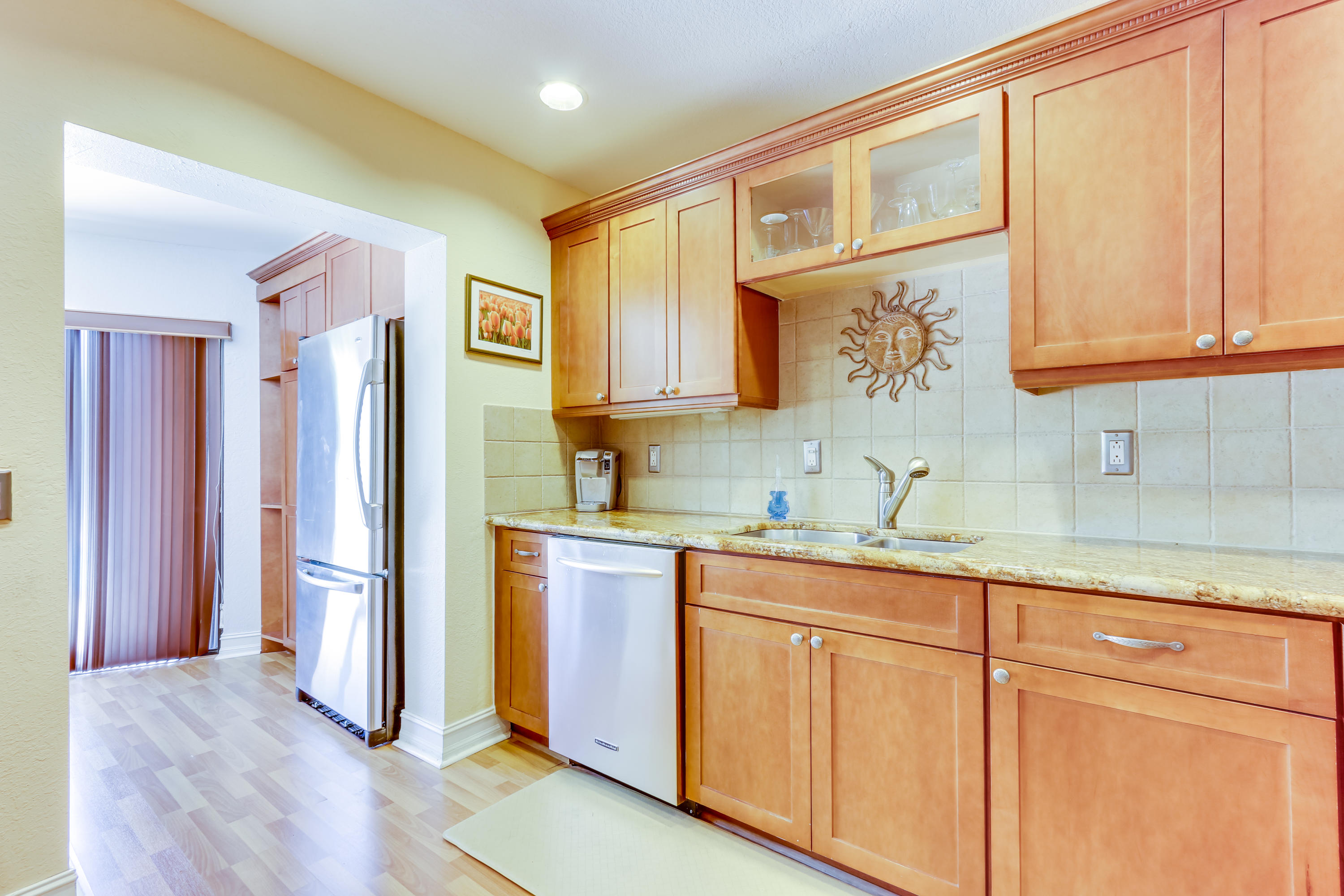 Private oasis in a great location!! This beautifully updated 3 bedroom 3 bath home with a magnificent pool has everything you could want. Walk through the front door to an open split bedroom floor plan with spectacular pool views from all over the home. The ample front living room is light and bright with a large window. The sizable kitchen features beautiful granite, stainless steel appliances, double oven, abundant storage and counter space, as well as a long bar for entertaining. The kitchen overlooks the open dining room and second spacious living area with an amazing fireplace. The master bedroom is one of a kind with floor to ceiling wardrobes in its own dressing room. The room has french doors overlooking the tropical pool, and a completely renovated master bath with dual sink