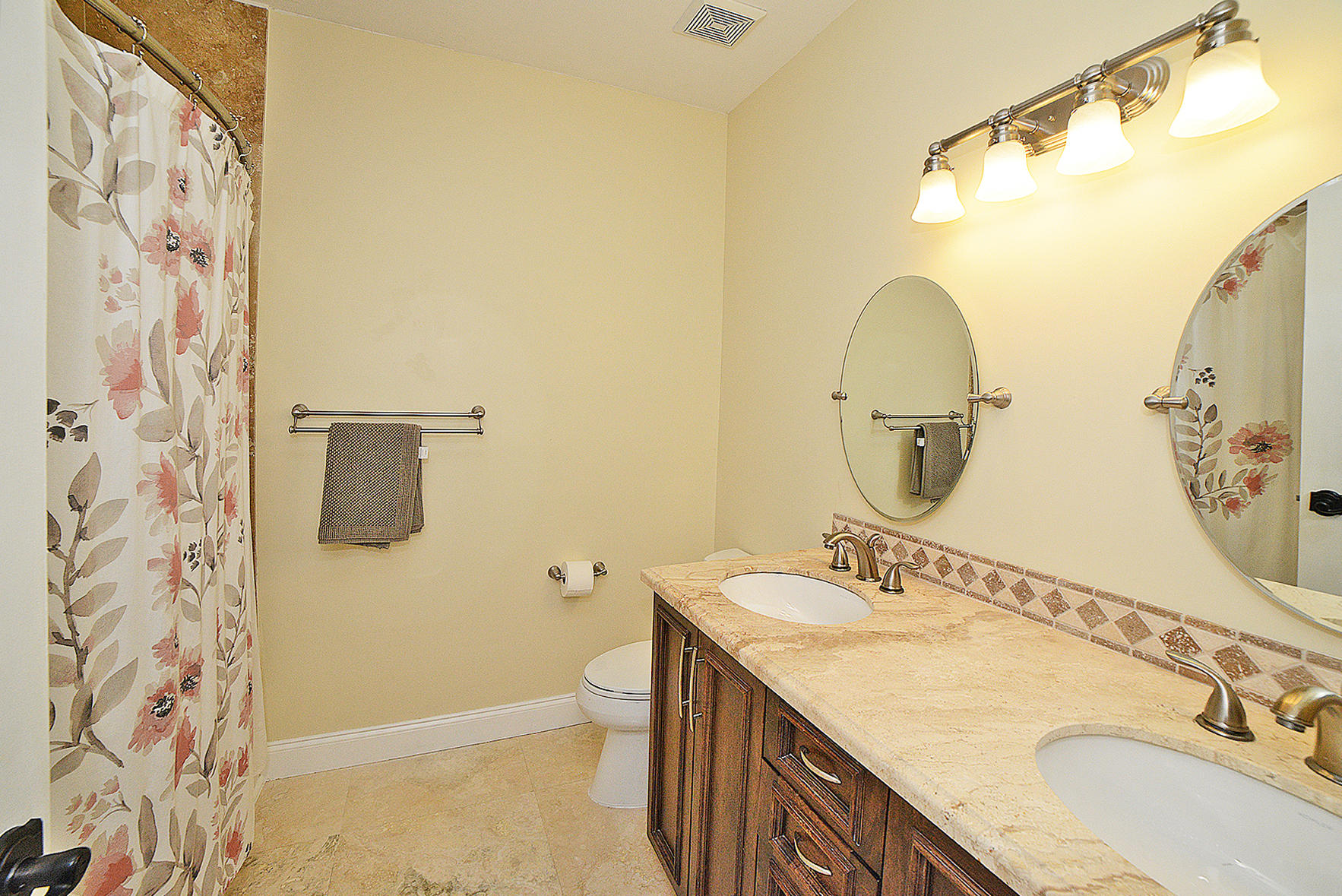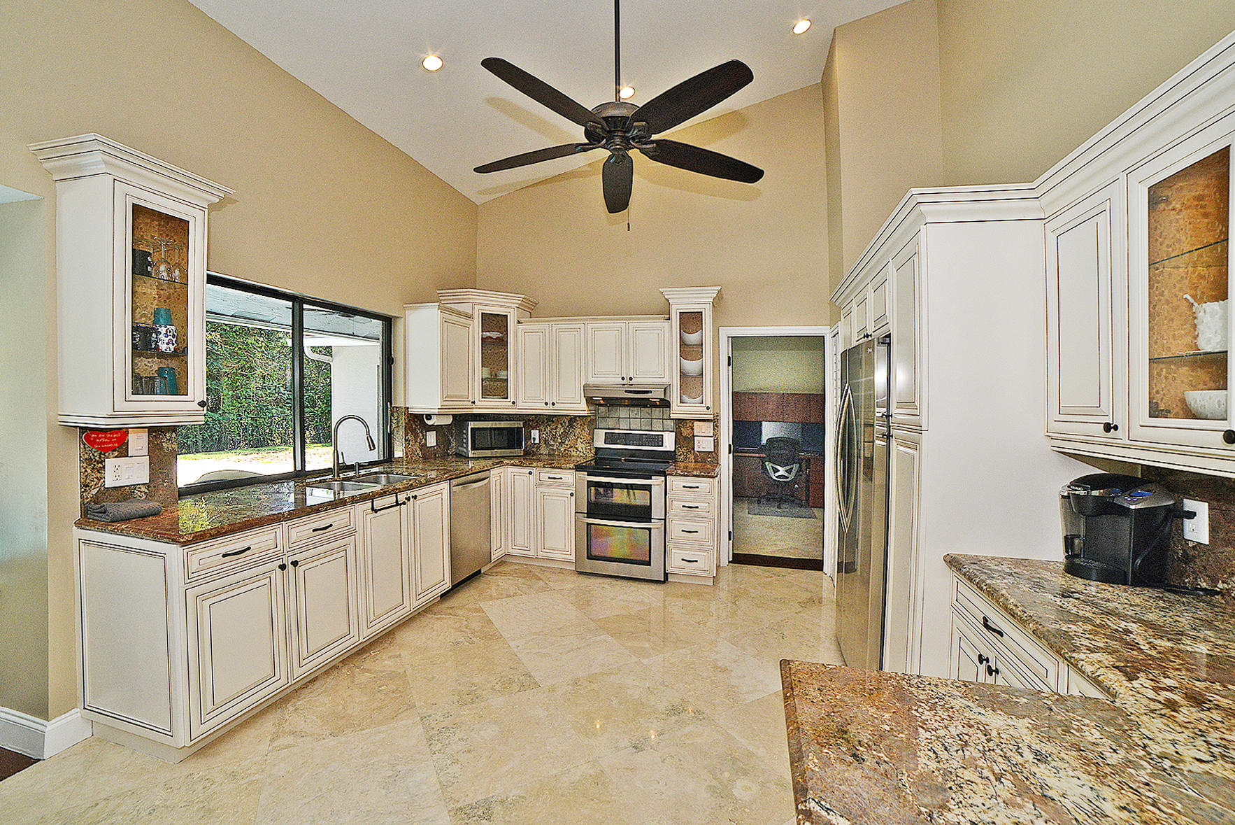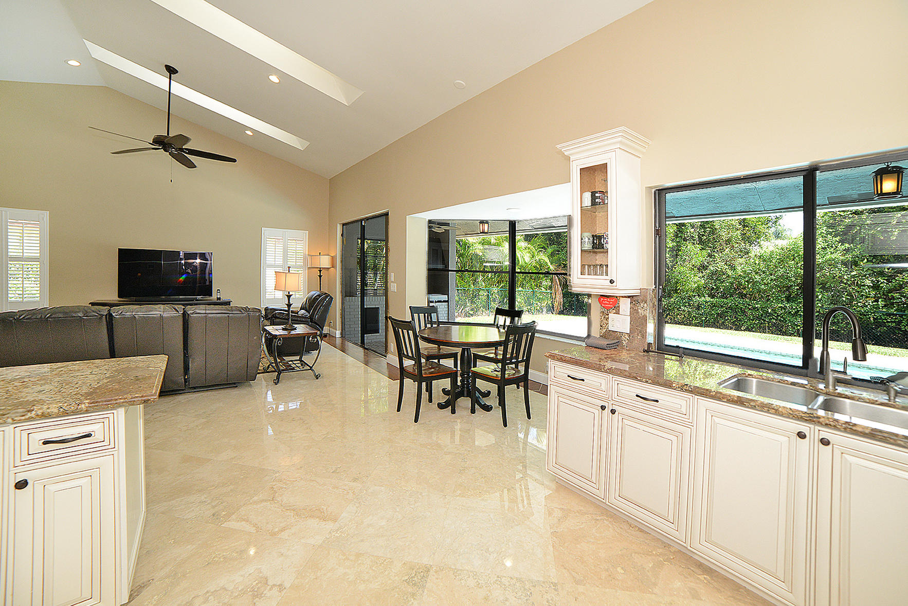 Completely Renovated residence in the heart of Central Boca Raton located in the beautiful tree lined "rarely available" Lakewood Oaks community. From the 15' vaulted ceilings to the stunning 24" x 24" diagonally set Travertine marble flooring accented with designer wood borders, Spacious, light & bright living areas have high hat lighting & fantastic natural light flowing in from impact glass skylights & multiple sliding glass doors with Beautiful views of the perfect outdoor Area. Plantation shutters thru out and the master suite has his/hers walk in closets. Tumbled stone pavered patio & pool deck. Note: Vivint alarm panel is excluded from the sale of the home.