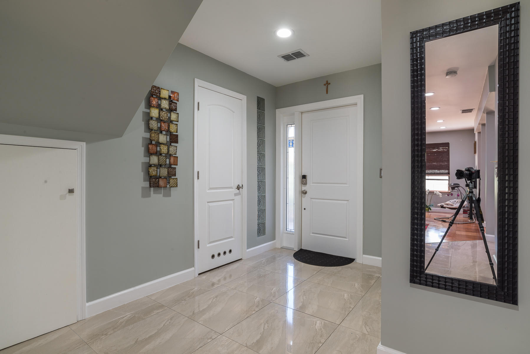 Largest floor plan in the community. 3/2 1/2 with a bonus rm that can be easily converted into a 4th bdrm. This unit has been meticulously updated with all the best. Wired for Lorex Home Sec. System. Everything is new. 1st floor remodeled 1 yr. ago with solid white oak hardwood fls,ceramic tile, new kit.,laund. inside, no popcorn, no knock dn, smooth plaster, recessed lighting, new copper piping in whole house, new tankless water heater, LED lighting. Upstairs completely remodeled 3 yrs ago. inc. solid white hardwood fls with dbl noise barrier, new solid wood bdrm doors, most of upstairs has new drywall. A/C 4 mo., new gutters, hurricane protection complete with gar. door, new insul in attic. Water proofing around entire foundation. Beautiful wood deck out back. Low HOA and great schools
