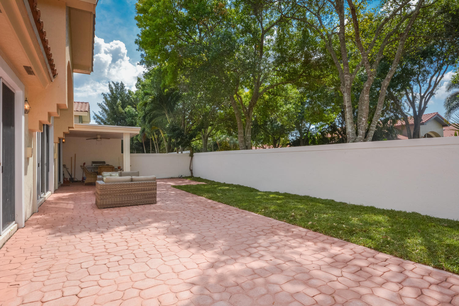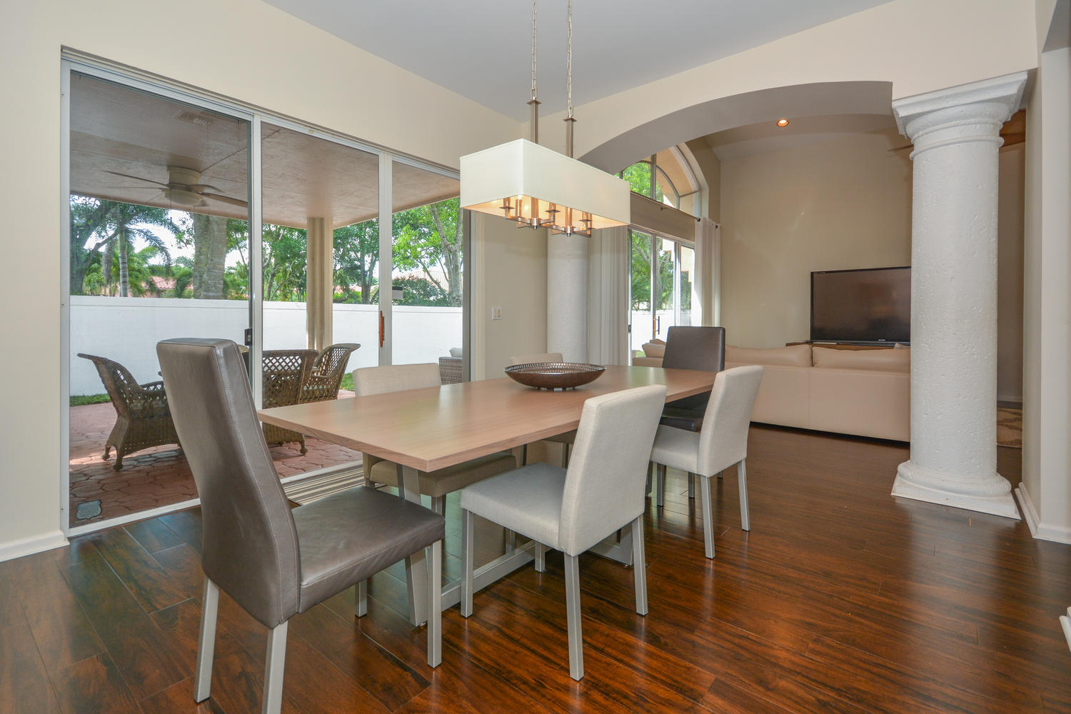 An exceptional property decorated with style and elegance in the highly desirable community of Santa Barbara. This beautifully designed open floor plan has high volume ceilings and an abundance of windows that give a bright, open feel to the living areas of this home. The upgraded kitchen with granite countertops and newer stainless steel appliances overlooks the expanded main living and dining areas with wonderful views of the outdoors. The roof was replaced in 2013, A/C's in 2013 and 2016. All rooms are generously sized.The master bedroom has an en-suite bath featuring two sinks and a separate tub and shower. The second bedroom also has its own bathroom and bedroom number three has built-ins and is set up as baby nursery with an adjacent bathroom