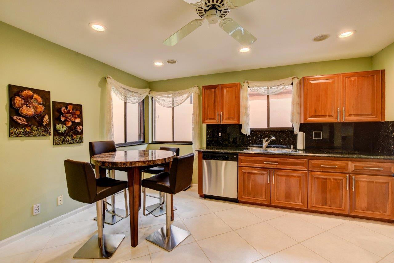 Located in highly desirable Villa Flora in Boca Pointe. Elegantly updated and renovated, bright and spacious with an open floor plan. Large neutral tile on the diagonal, upgraded kitchen with granite countertops and stainless steel appliances. Custom built in drawers and cabinets with granite vanity top in master bath. Newer roof and instant hot-water heater. This home is in immaculate condition, move-in ready. Boca Pointe has optional a-la-carte membership plans without having to purchase equity including social, golf or tennis, fitness, clubhouse and restaurant.