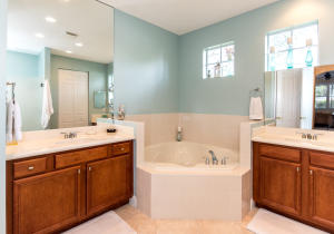 Gorgeous 4 bedroom, 3 bath, 3 car garage, single-story Estate Home with den and private pool situated on an oversized private lot with no rear neighbors and located on a quiet cul-de-sac street. Bright, open floor plan has voluminous ceilings and crown molding throughout; freshly painted and new carpeting in den and bedrooms, this home looks and feels new. Living areas have tile set on a diagonal; kitchen has upgraded stainless steel appliances, wall oven, 42'' maple wood cabinetry and opens to a spacious family room with sliders to the peaceful backyard. Master suite features his & hers walk-in closets, dual vanity sinks and a separate Roman tub. Over-sized laundry room with sink (wash & dryer negotiable). Exterior features include custom landscaping, a heated salt-water pool with spa,