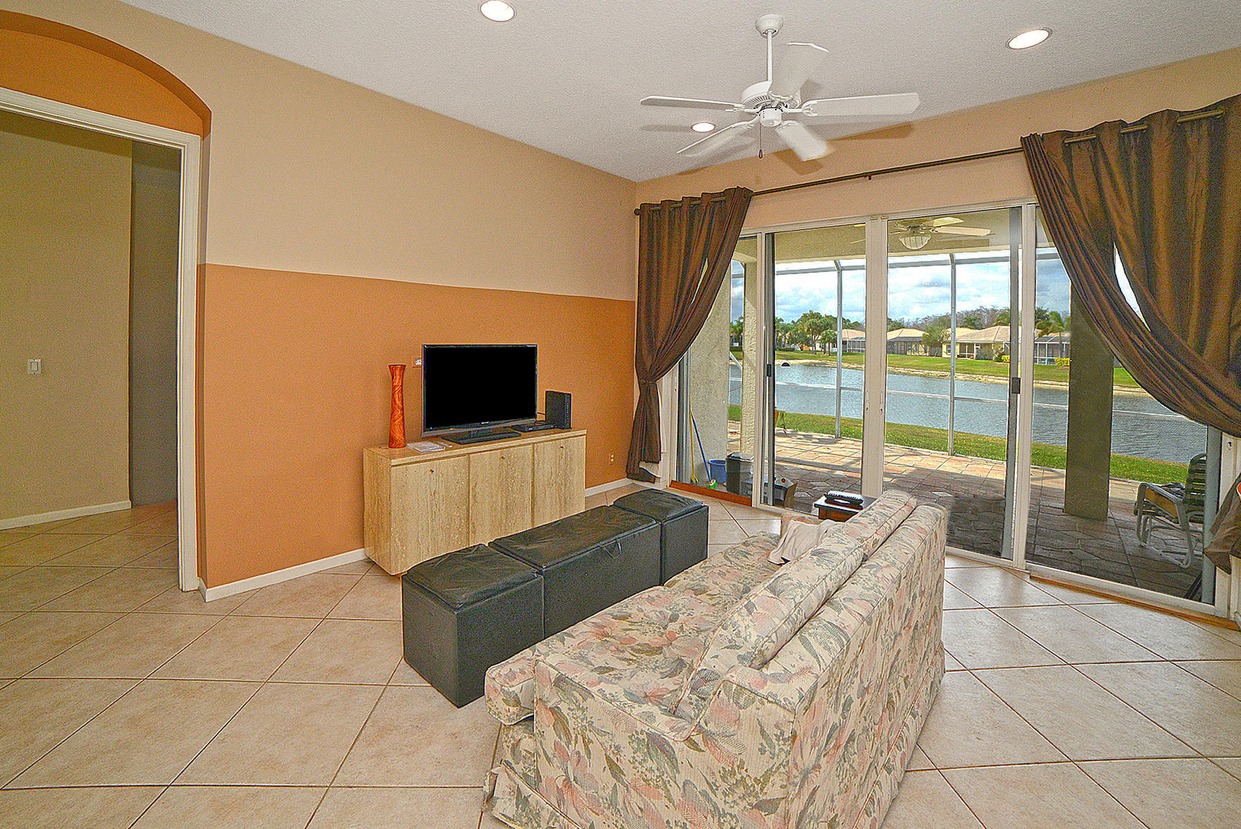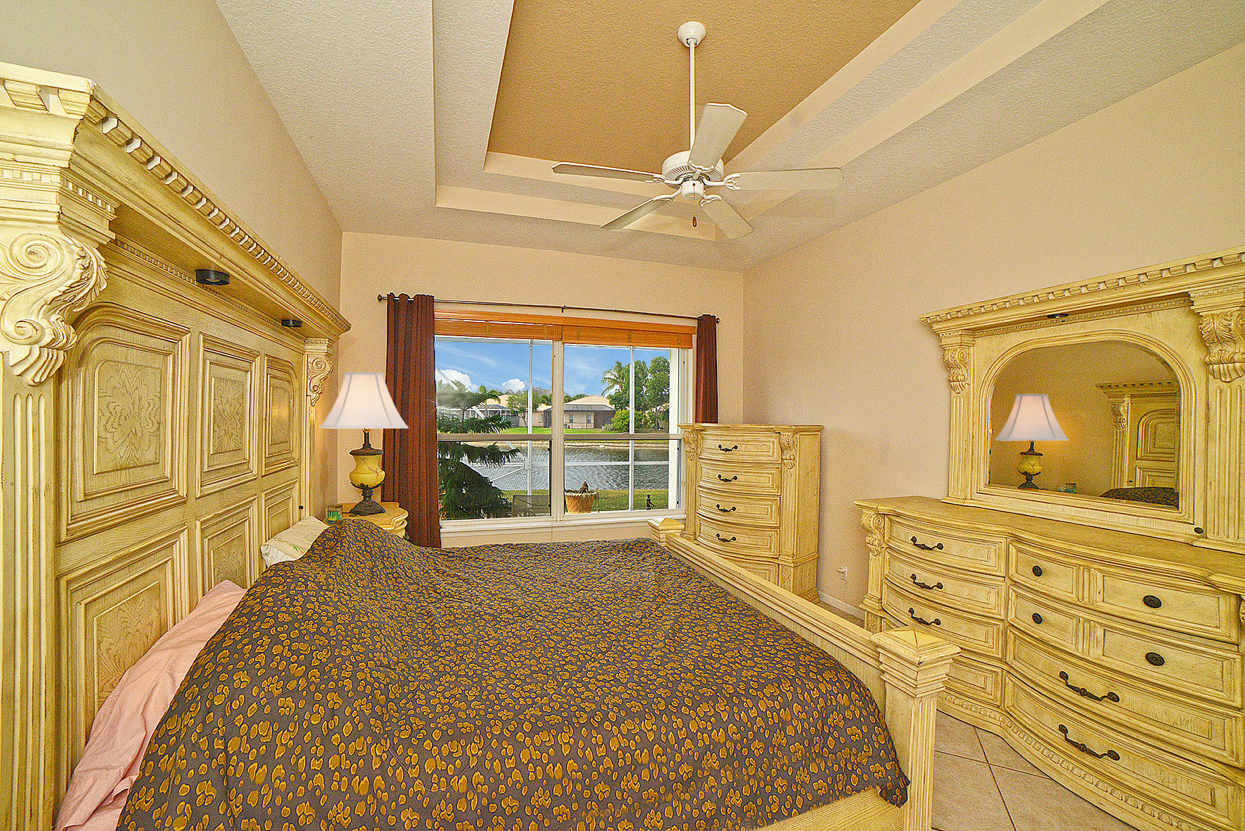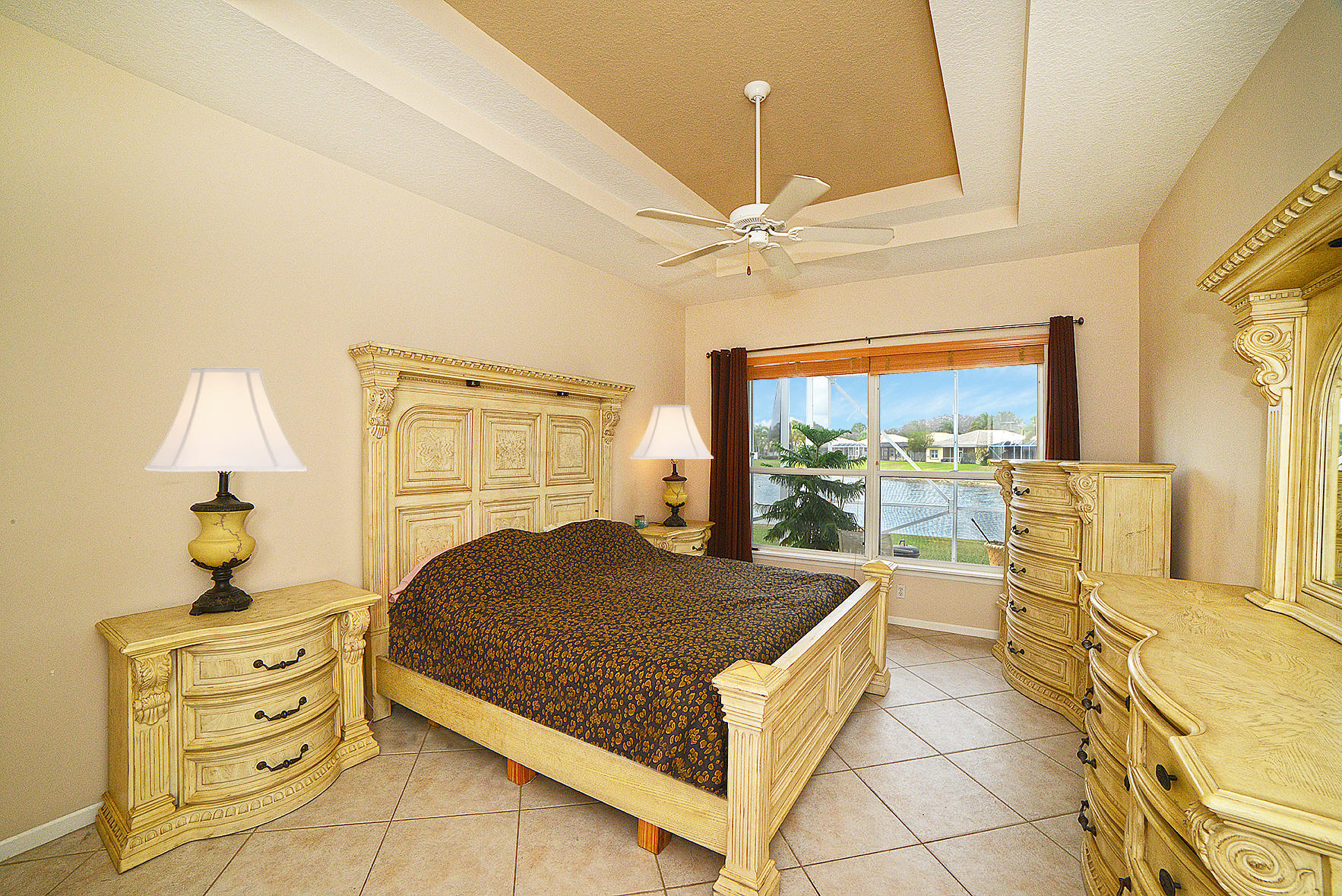 You are going to fall in love with this stunning 3/2 single family home nestled on a lake front pie shaped lot at the end of a cul-de-sac in Andros Isle! This light and bright home has it all with tile on the diagonal throughout (No Carpet), decorative tile inlay in the foyer complemented by a mirror with marble sill and chandelier, trey and double trey ceilings in several rooms, extra high hats throughout, jaw dropping lake views from all rooms but one, oversized windows allowing in tons of natural light, open concept floor plan, chef's kitchen with corian countertops, real wood cabinetry with high gage pull out sliders throughout the kitchen and bathroom, upgraded kitchen aid appliances, backsplash, PLEASE CLICK ON THE SUPPLIMENT LINK FOR A FULL DESCRIPTION...
