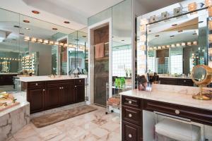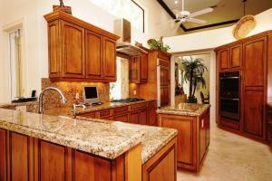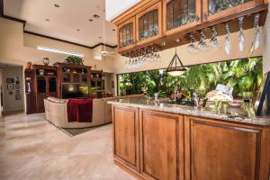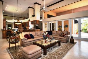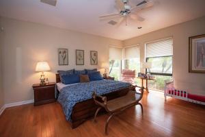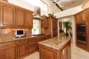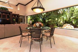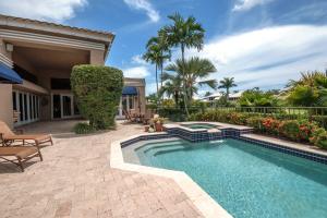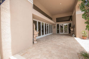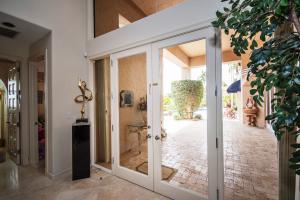 This 1-story courtyard home has golf course & water views from every window! The creamy marble flooring with 24x24 tile set on a diagonal is the perfect back drop for any style of furniture. In addition to the 4 bedrooms, there is an office with French doors & magnificent views. The large kitchen was remodeled in 2000 with custom cabinetry, double ovens & gas cook top. The master bedroom is well appointed with enormous his/her custom closets & wood flooring. The guest house has a kitchenette, wood flooring & French doors that open directly onto the pool area. The pool is surrounded by marble pavers & beautiful landscaping. Other features include: Plantation shutters, heated pool, 6 A/C units replaced approximately 2012, roof replaced in 2011, flat roof replaced in 2015 & a gas generator.
