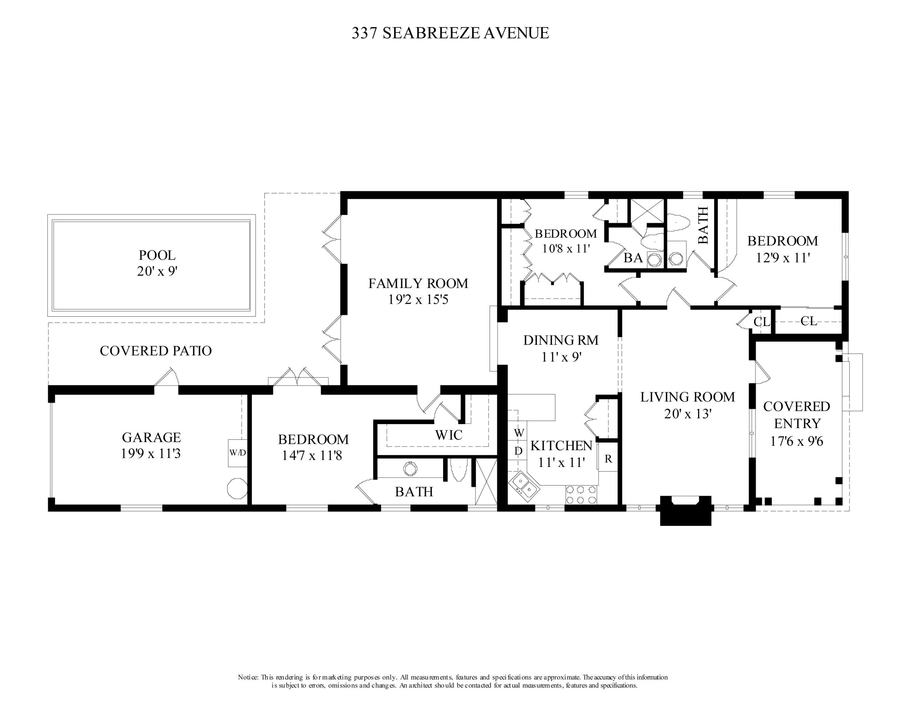 Charming ''Old Florida'' style cottage located on most desirable in town ''Sea'' street. Meticulously maintained 3 bedroom, 2.5 bath with private rear entry garage and covered front porch. Features include hardwood floors, family room, fireplace, circular driveway, lovely pool and patio surrounded by lush landscaped gardens. Half bath can be converted back to full. Excellent income opportunity.