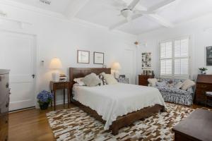 ''Casa del Sol'' is a bright and spacious 6 bedroom, 6 1/2 bath Fatio home with lush tropical landscaping and a 20' x 40' salt filtration pool, situated on a quiet oversized lot with private deeded beach access. Large walled yard with mature established trees has magical evening illumination, and an elegant, covered patio is perfect for outdoor living. Chef's kitchen features stainless appliances Viking gas stove, twin refrigerators, fresh cabinetry and extensive storage. Both stately and inviting, the residence is approximately 5,500 square feet with 2 laundry areas and separate guest quarters. Cypress windows with storm shutters and screens, a 150' side drive leading to rear service road and a 2 car garage provide ample off-street parking.