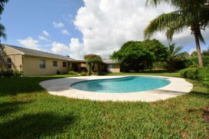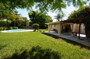 Situated on just under half an acre of lush property, this tropical oasis is conveniently located east of I95 and minutes from downtown West Palm Beach. The 2 bedroom, 1 bath home has been renovated and boasts a huge private back yard including a fabulous sun drenched pool, a covered loggia tucked under a 100 year old Poinciana tree, a decorative drive leading to a carport and a massive detached garage/work space. More privacy than you can imagine.