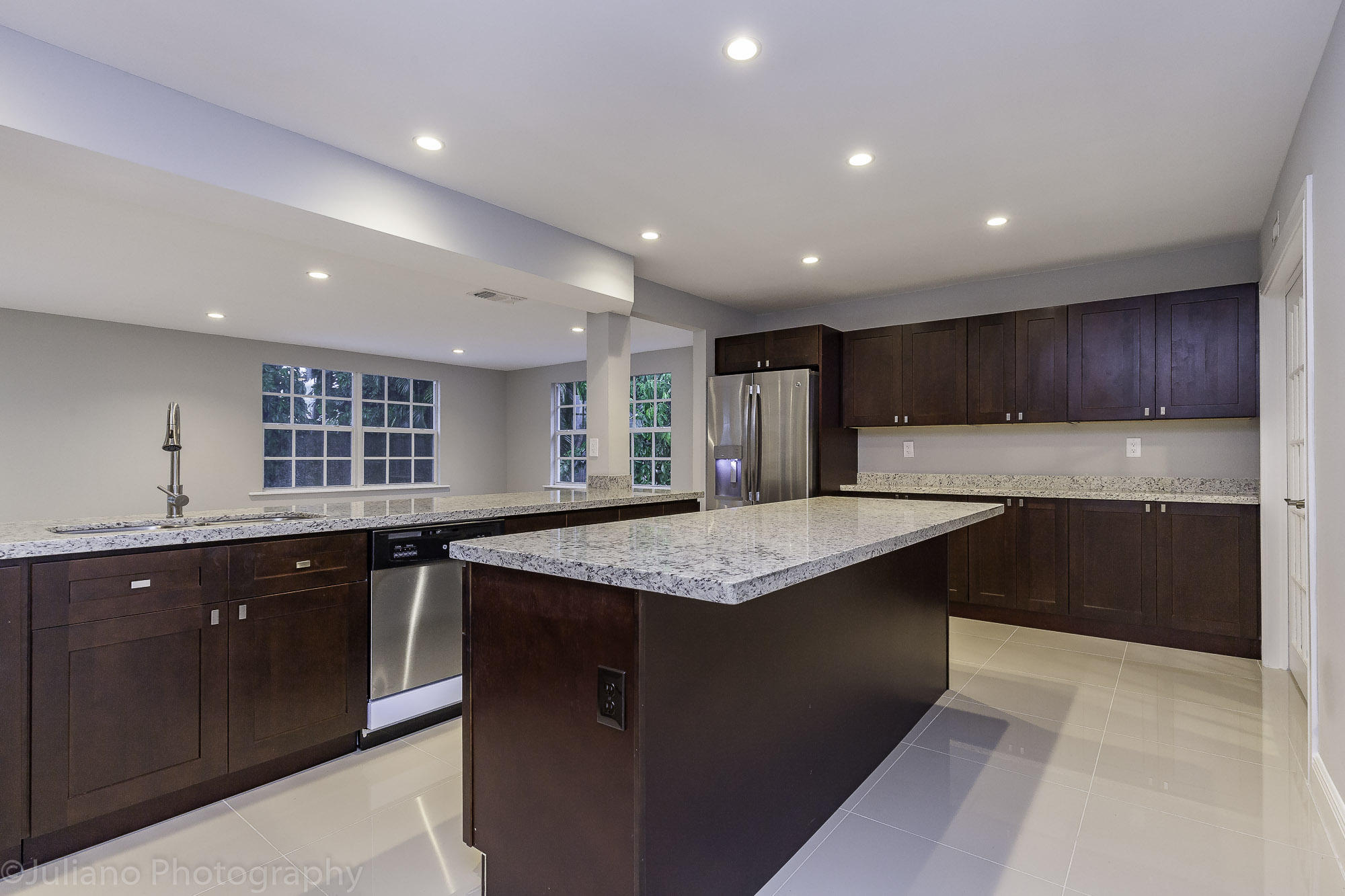 A real move in ready gem in East Boca Raton. Located by US1, very close to Mizner Park. 2 story completely renovated large stunning 2444 sq ft house. Downstairs - brand new flooring, updated bathrooms, new washer and dryer, opened custom built kitchen with brand new GE appliances, custom built cabinets, new granite, house is full of light. Downstairs - 1 bedroom, kitchen, living room, half bath, 1 separate shower, laundry room. Upstairs - 4 bedrooms with new flooring, 2 updated gorgeous bathrooms, master bedroom has a beautiful built in closet. Large fenced 0.18 acre yard with a pool. New landscaping. No HOA.