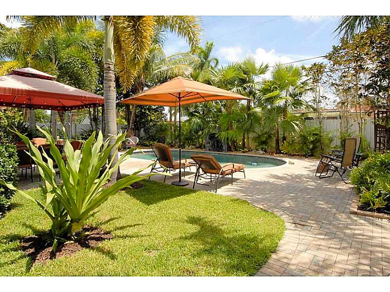 Corner lot perfect for entertaining in your own piece of paradise. FEATURES-home warranty, updated kitchen w/cabinet lights, impact windows, French Doors, security sys., crown molding & pest control. EXTERIOR-circular drive way, sprinkler system, hidden R V/boat storage, storage shed, pvt backyard/pool w/room for hot tub, backyard seats 18, outdoor dining, lush landscape, exterior lights. Under 10 min. to Wilton Manors, parks and I 95. All room dims. are approx. and not guaranteed. Welcome Home!