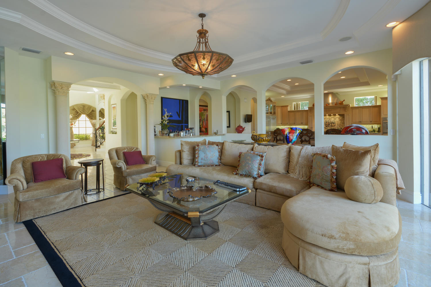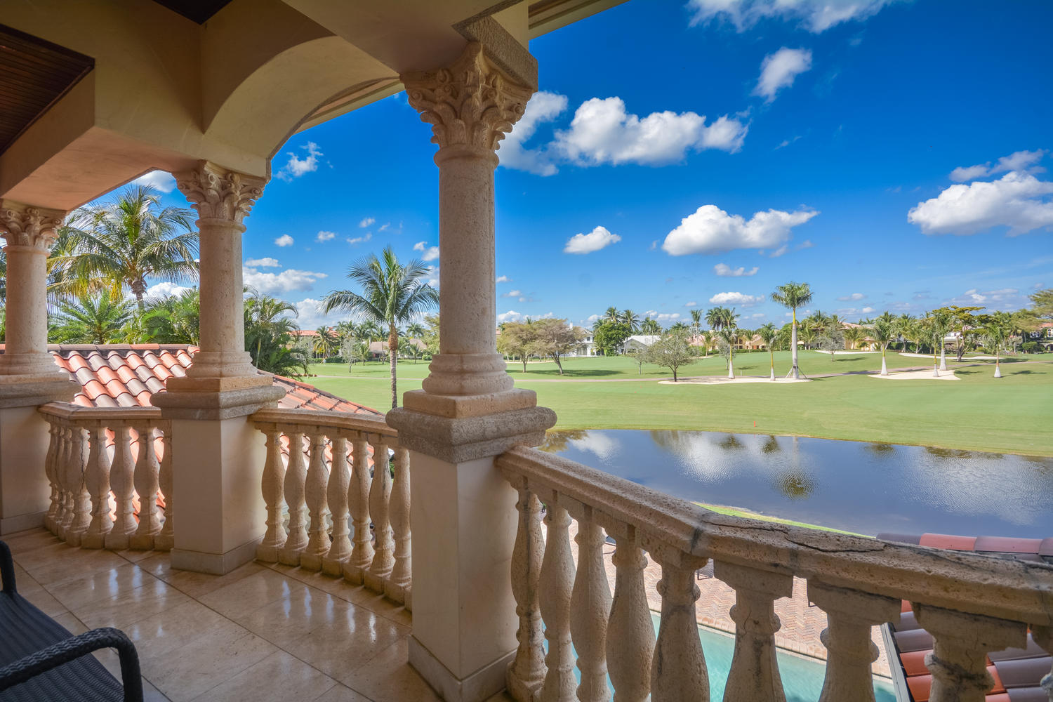 Dramatic 5 bedroom 6.5 bath estate on spectacular lake and double fairway golf course lot featuring a double stairway entrance foyer, spacious master suite with private office or retreat room, large media/game room with fireplace and built-in entertainment area, beautiful marble & hardwood flooring, gourmet kitchen overlooking the breakfast area and family room leading to outdoor entertainment area with resort style pool, spa and covered loggia with summer kitchen. The information herein is deemed reliable and subject to errors, omissions, and changes without notice. All measurements are approximate.