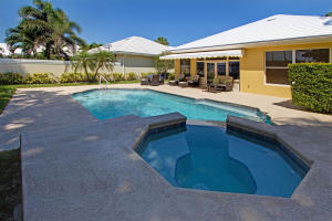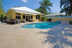 If you've been looking for a beautiful pool home on a golf course in the gated community of Bear Island, then look no further as this is the ONLY one on the market! This 3 bedroom West Palm Beach house is unique - unlike many others in the community, the main living space and kitchen have been opened up to create an open concept floor plan. Imagine cooking in the kitchen with granite countertops while enjoying the view of your heated pool and spa through your french doors. There is a separate laundry room with extra cabinets. The 2 car garage has ample room for vehicles, bikes, luggage, sports gear + more. Pool and patio have been recently resurfaced and have new pump and heater, newer HVAC system and hot water heater , and transferrable termite bond! What more could you ask for?